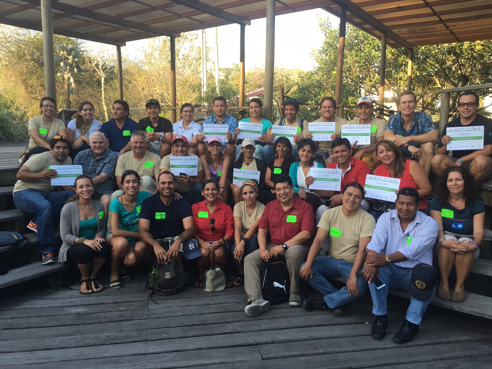 I participated in an earlier guide training effort in the Galapagos in November 2013, which laid the foundation for this current course. For the 2013 course, we had brought world-renowned guide training experts Sam Ham and Tom O’Brien to the Galapagos. (Sam Ham is famous in the guide training universe for having literally “written the book” on thematic interpretation in guiding that is a bible of the genre and used across the U.S. National Park system; Tom is a longtime collaborator with Sam and renowned guide and tour leader for Lindblad/Nat Geo.) In 2013, 20 top Galapagos guides participated, and it was great to see how these top level guides responded to Sam & Tom’s training in thematic interpretation. It was a good event, but we came away feeling that we needed to find a way to get this same training and material on universal best practices into the hands of all of the 300+ guides that are leading tours in the Galapagos, and not just a lucky few.