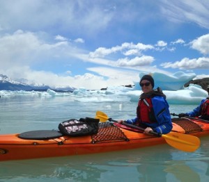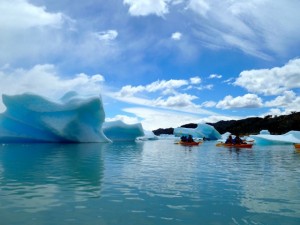 Many of our travelers head to Los Glaciares National Park, Argentina, with the desire of seeing the park’s namesake: glaciers. The Perito Moreno Glacier is famous for its incredible rate of movement (up to 2 meters per day) and the fact that you can hike on it and gaze into its eerie blue depths. For another intimate encounter with stunning chunks of ice I recommend putting kayaking on your itinerary. Estancia Cristina has recently begun offering kayaking on the Upsala Arm of Lake Argentino. The excursion begins with a slow, scenic boat ride of about 2.5 hours to reach a calm part of the lake where conditions are favorable to kayaking. During the boat ride the guides take advantage of the time by educating passengers about glaciers, their movement, and the formation of icebergs. The time is also spent on the long and very necessary process of putting on a dry suit. A dry suit, like a wet suit, is designed to maintain your body temperature while in cold water; however, the aptly named dry suit is designed so that if you fall into the water your body will stay completely dry except for your head and hands which are outside of the vice-like grip of the dry suit sleeves and neck hole. Putting on a dry suit is serious business. It took us close to an hour to watch the demonstration of how to put them on, to collect the various pieces of the suit, and then to squeeze ourselves into them. My fellow kayakers and I could not stop laughing as we took countless photos of each other in our highly technical but very unfashionable get-ups. Once we landed at a protected inlet of the lake our instructors gave us a thorough demonstration on how to paddle and maneuver the two-person sea kayaks. All the preparation and effort was well worth it when we pushed off into the perfectly still, icy lake and quietly glided by our first iceberg. Cruising up Lake Argentino we passed many beautiful bergs, yet there is nothing like looking up at a massive iceberg from the perspective of the surface of the water. Our guides paddled around us playfully like river otters, instructing and encouraging us as we awkwardly made our first attempts at maneuvering through the narrow, labyrinthal space between the bergs. There were moments when my kayaking partner and I miscommunicated and bumped into the side of an iceberg. If we were going fast enough this would have tipped us over but happily no one went for a swim that day. We spent around 2 hours in the kayaks, paddling around the serene inlet, gazing at the awesome spectacle of glacial ice inches away from us. If the weather is calm, which is never a guarantee in Patagonia, I would rate the physical challenge of this excursion as moderate. However, if the weather changes, which happened our last 30 minutes in the kayak, the power of the famous Patagonian wind will require you to use your upper body strength and stamina. If you are up for a little adventure and exercise and are looking for a unique way to appreciate the gorgeous icebergs of Southern Patagonia, consider adding the Estancia Cristina Kayaking excursion to your itinerary.