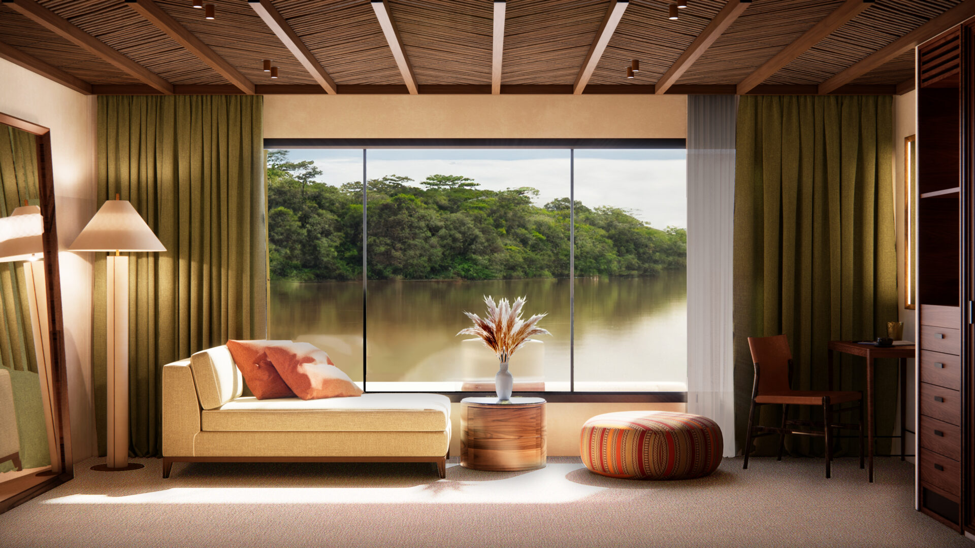 Before breakfast, embark on an early birding excursion. Depending on the time of year, you can choose between a guided jungle walk to discover the rich flora and fauna of the rainforest or a serene kayaking journey along one of the river’s atmospheric tributaries. Alternatively, just stay put and enjoy some downtime, a spa treatment, and five-star service on board.