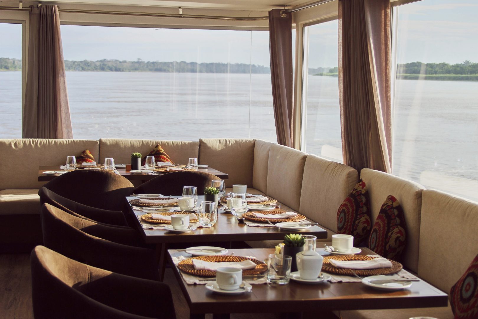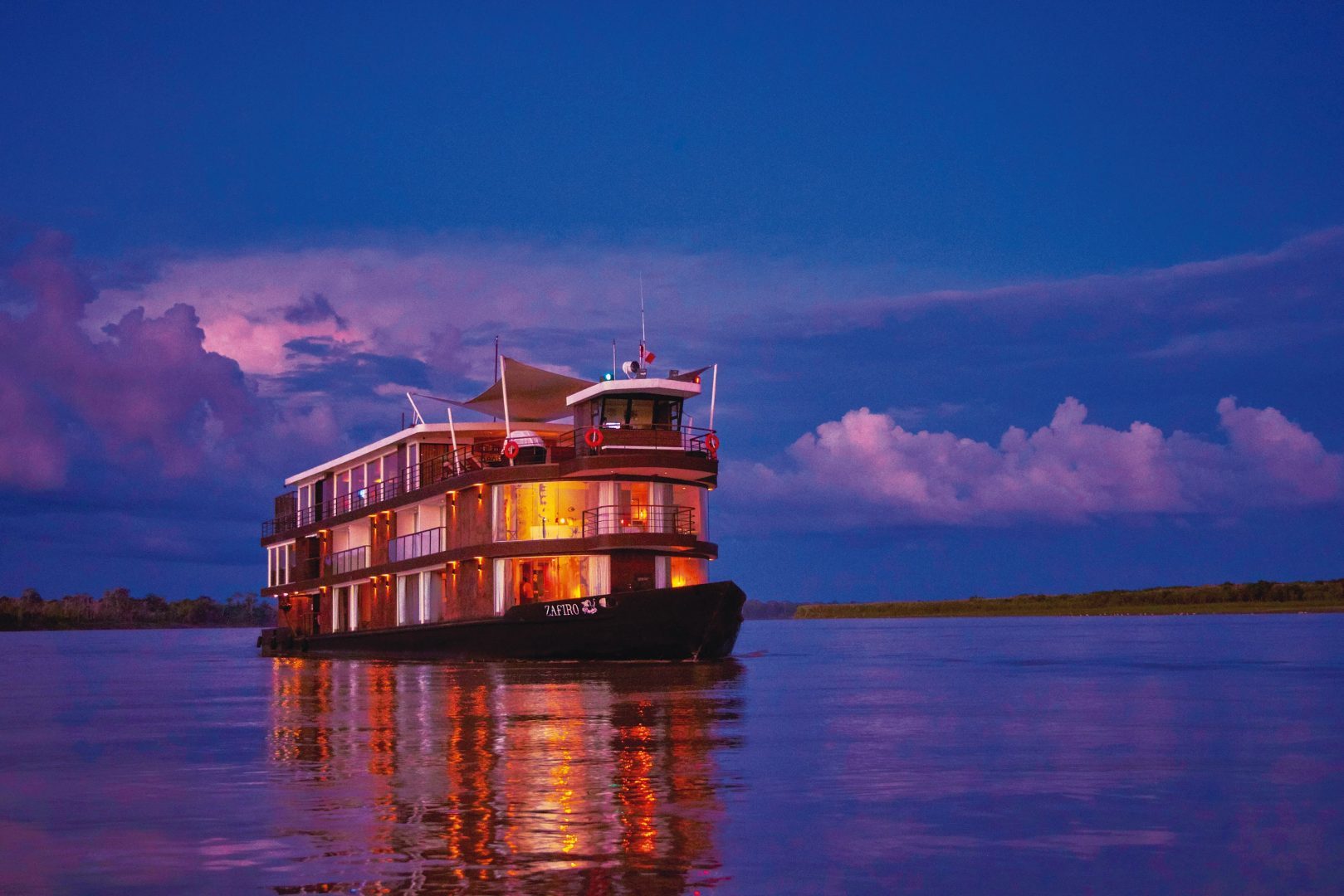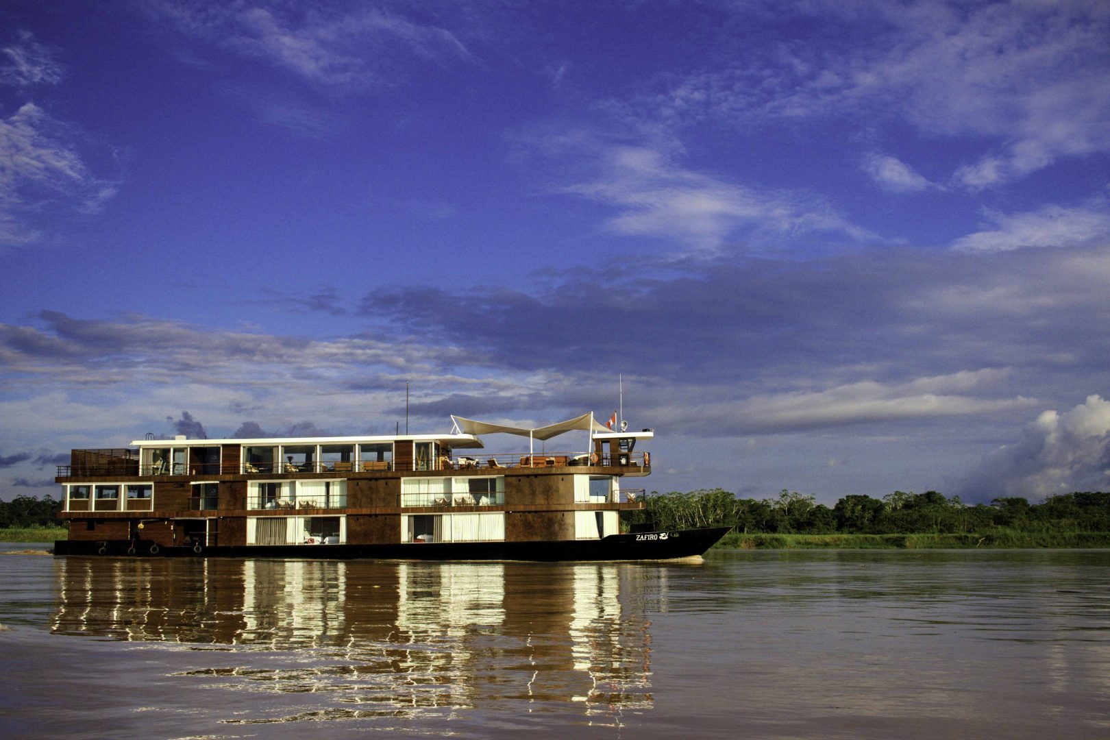 The Zafiro is a luxury Amazon cruise where comfort is part of the essence of the experience. The spacious panoramic windows with the open social areas, make the Zafiro an extension of the Amazon. On board the cruise you will take part in a unique culinary experience based purely on Amazonian foods. The Amazonian journeys, with the help of the expert guides, form part of the most genuine way to get close up to the fauna and flora of the Amazon.