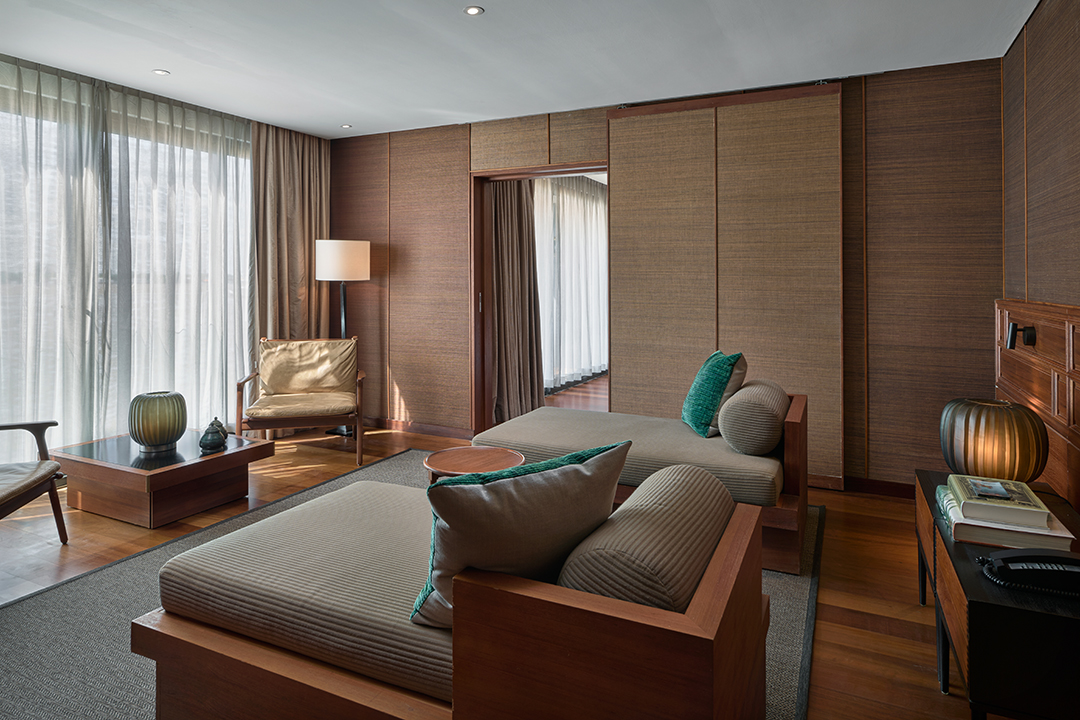 All suites have California King size beds with twin-bed configurations available. They also all have private bathrooms, air conditioning, river-facing panoramic windows, and en suite sitting area.