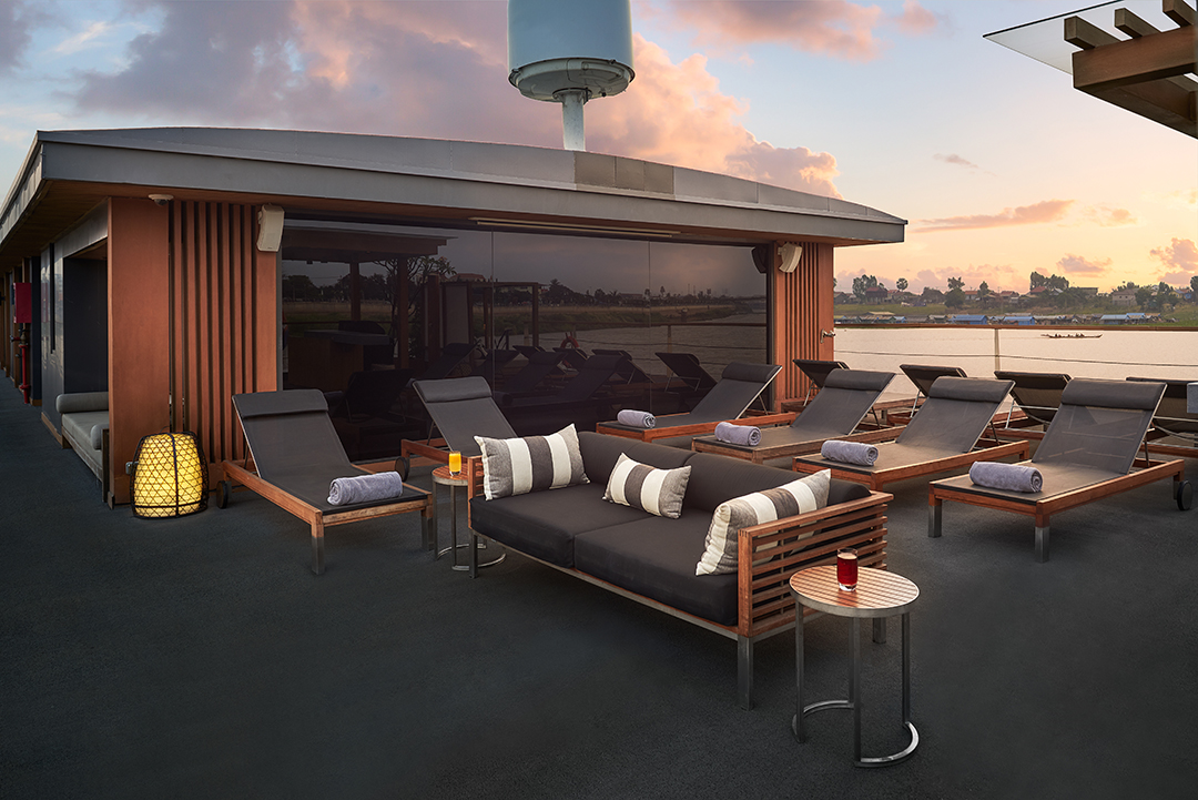 Explore the Cambodian capital by motorized tuk-tuk, including the Royal Palace, Silver Pagoda and the National Museum of Cambodia, home to the world’s largest collection of Khmer art. You can choose to visit the Tuol Sleng Museum of Genocide and the Killing Field. Enjoy a sundowner such as the Salted Watermelon Crush with Thai basil and toast to the onward journey towards the heart of the mighty Mekong with a Khmer Apsara performance, an indigenous tradition memorialized on the temple walls at Angkor Wat.
