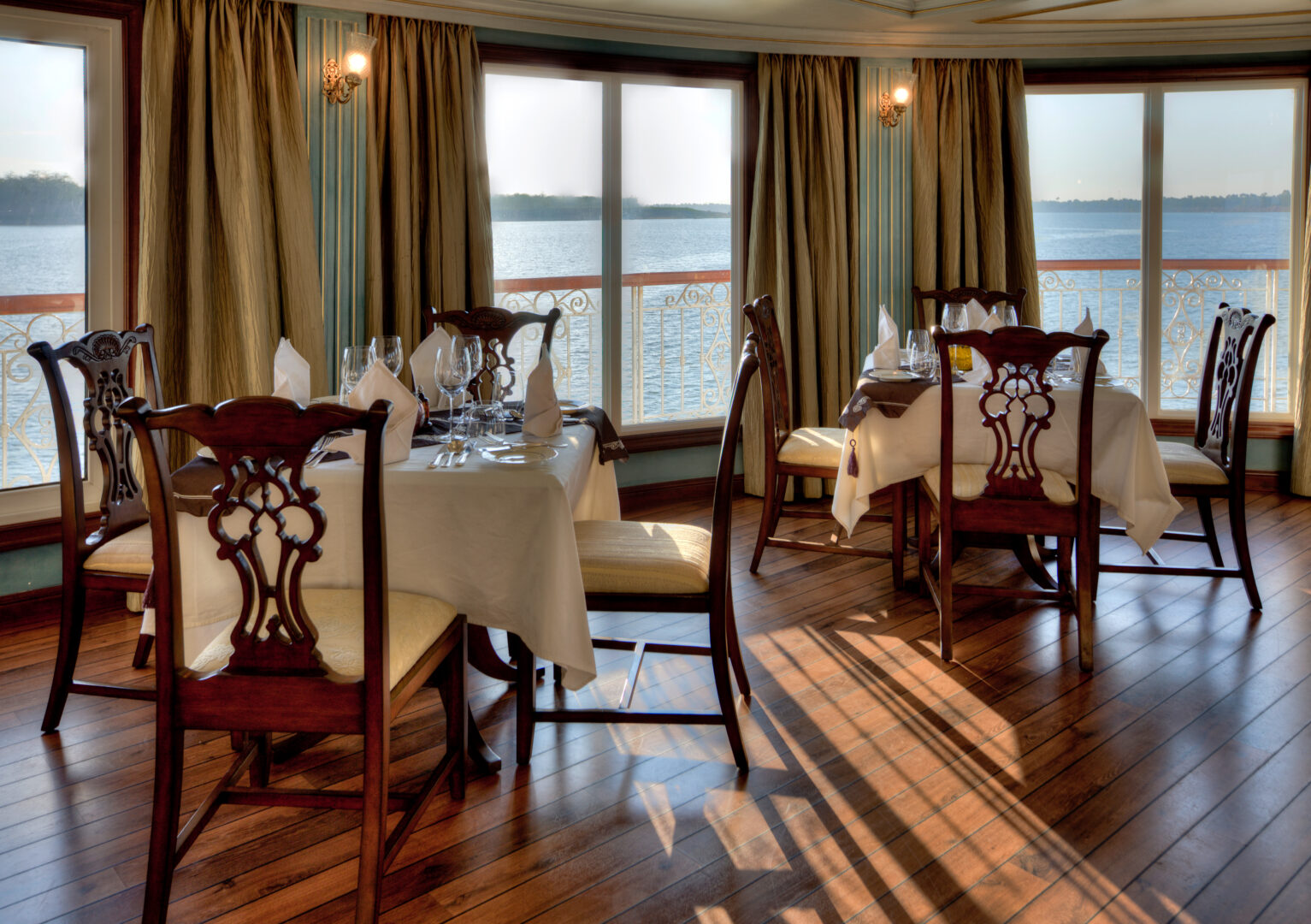 All cabins have queen sized beds with twin-bed configurations available. They also all have private bathrooms, air conditioning, and floor to ceiling windows.