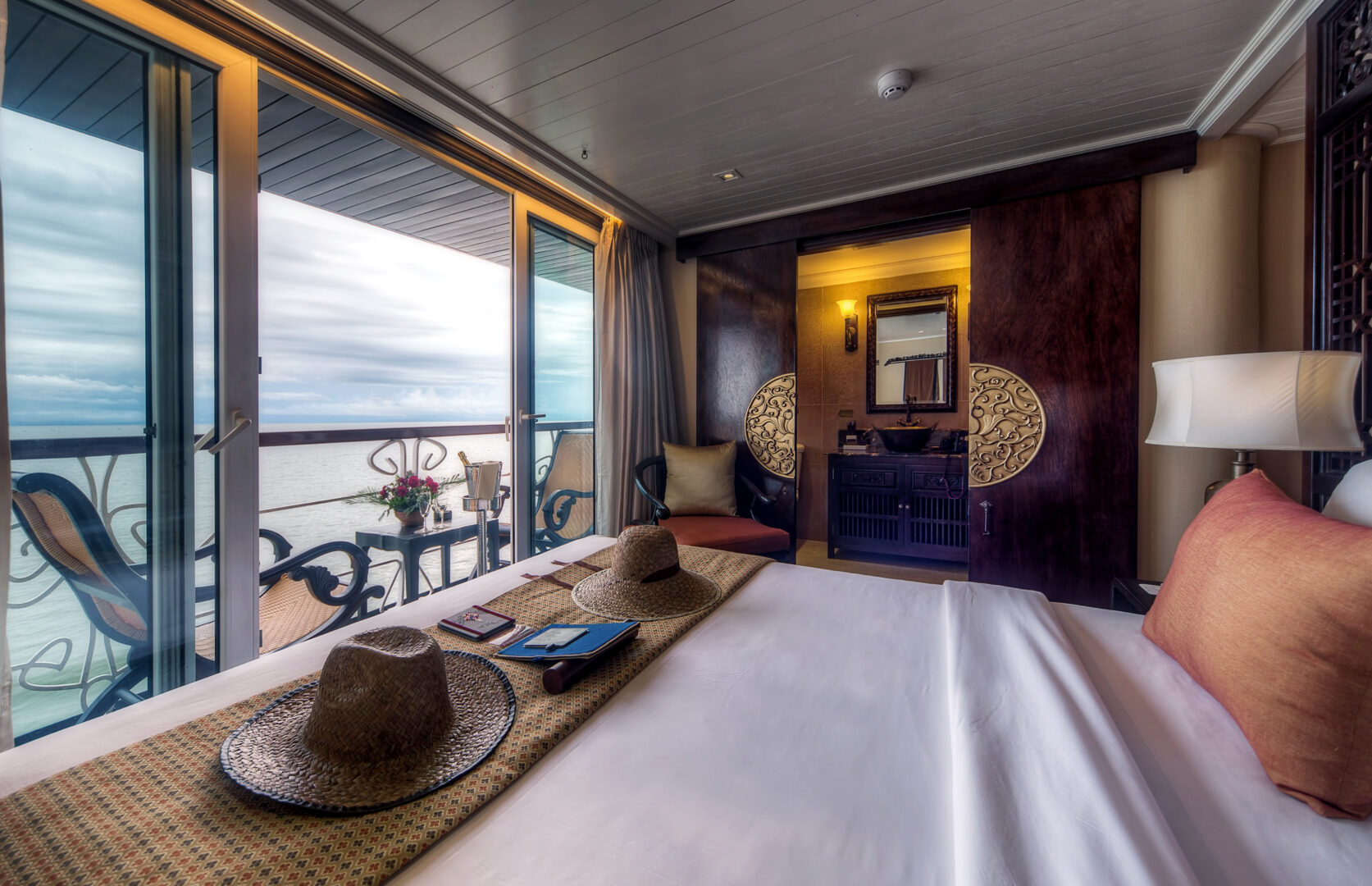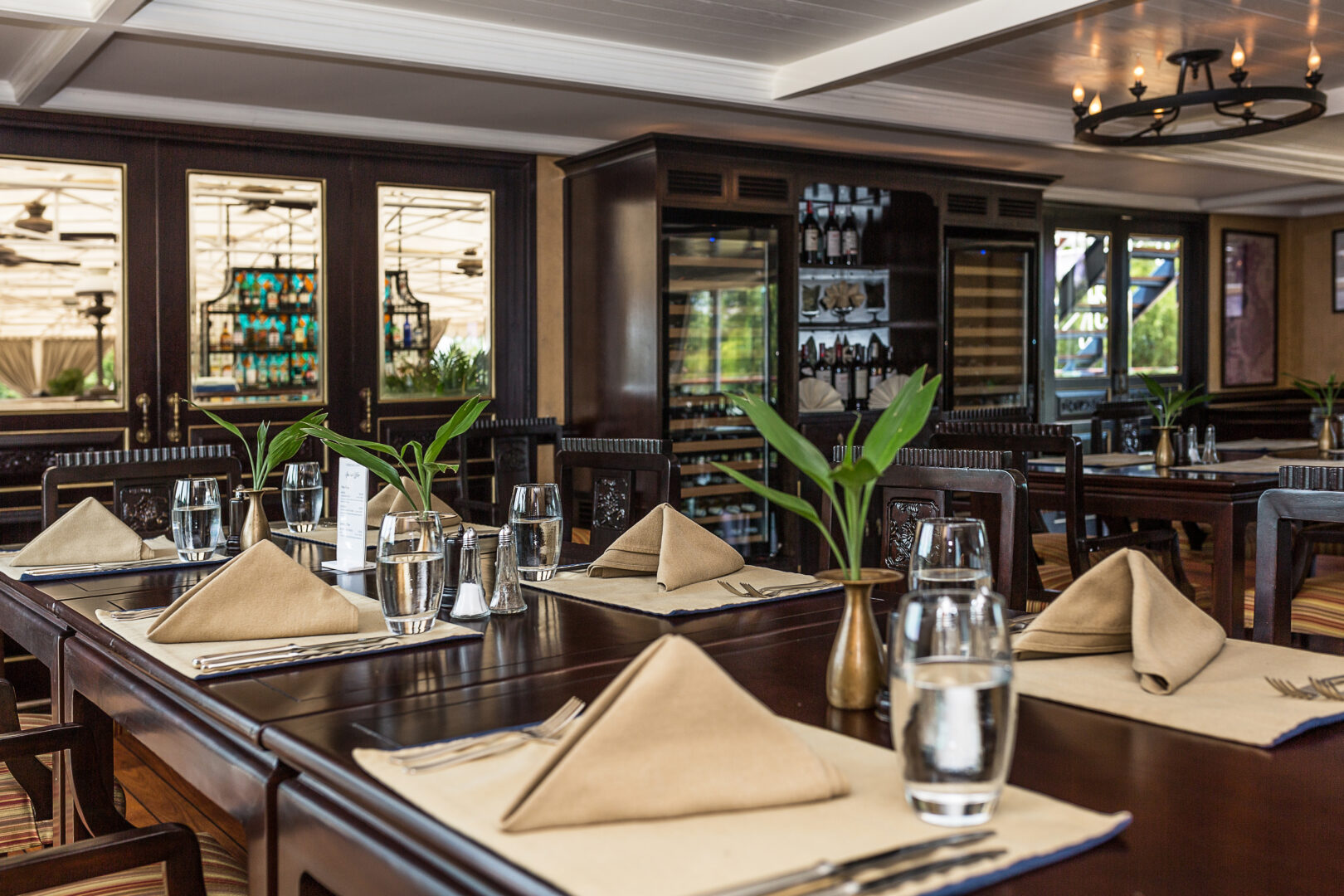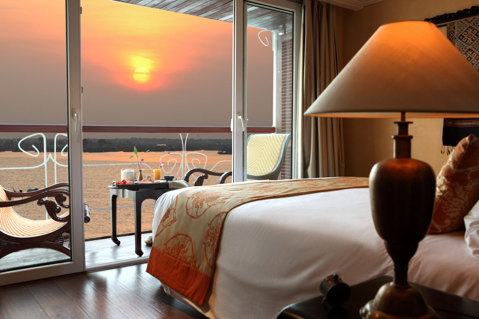 The Jayavarman has 26 spacious and luxuriously-appointed cabins. Located on the main deck, there are 14 Superior Staterooms measuring 21sqm. There are 11 Deluxe Staterooms on the upper deck, measuring 30sqm. Both superior and deluxe rooms feature a private deck and floor to ceiling windows. The 2 Signature Suites are located on the upper deck. At 27sqm they’re located at the very front of the ship, offering unparalleled views from the private balcony. They’re also serviced by a private butler.