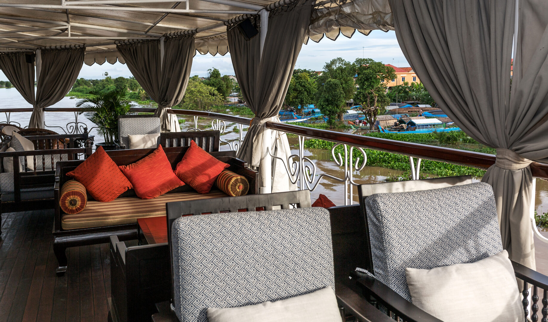 Year Built: 2009 Ports of Embarkation: Saigon, Phnom Penh and Siem Reap (Cambodia) Type of Vessel: River Expedition Vessel Length: 58m Beam: 11 meters Draft: 1.6m Cruising Speed: 10 knots Electricity: 220 volts AC: Central air-conditioning throughout Internet: Complimentary wifi