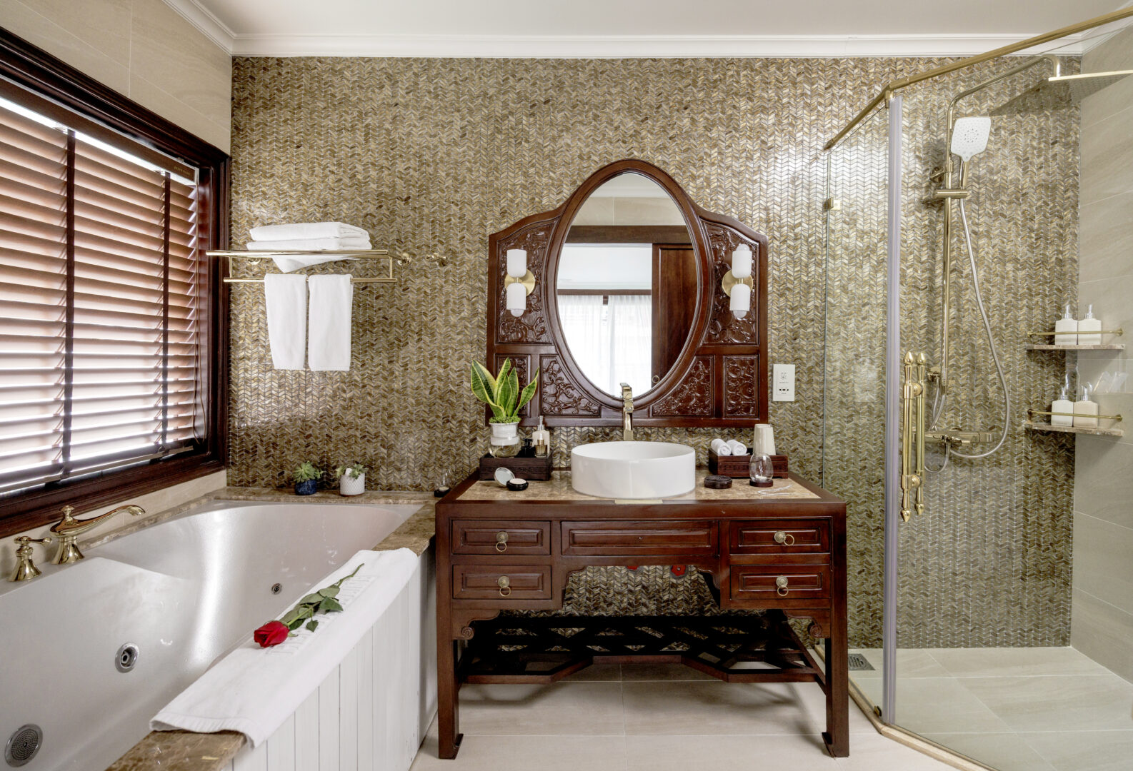 The Violet features just 6 total suites, making for an intimate cruising experience. On the main deck there are 2 Junior Suites. These measure 32sqm and feature on oversized bathroom and private balcony. On the upper deck, there are 4 Imperial Suites at 38sqm. All Imperials Suites are decorated in art-deco style and feature amazing views through the floor to ceiling windows and from each room’s private balcony.