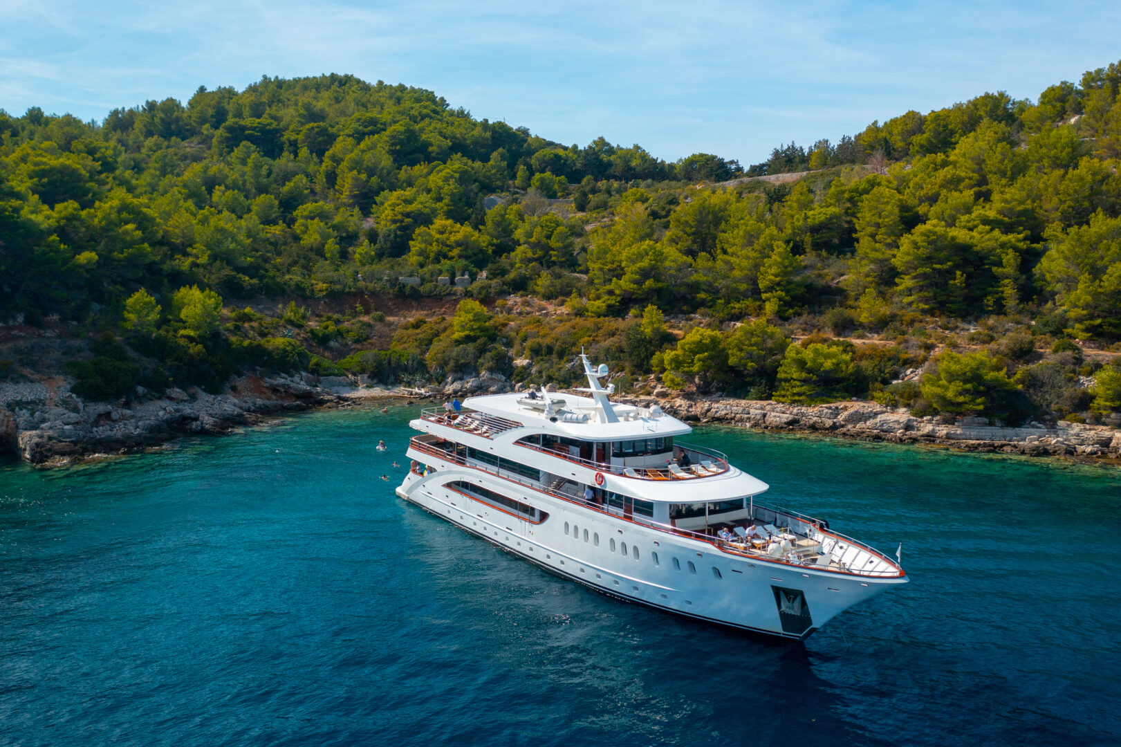 • English speaking cruise manager on board • 8 crew members • 7 nights cruise in a preferred category cabin • Complimentary fresh fruit available daily • Welcome reception and welcome dinner with three courses meals • Buffet breakfast daily • 6 lunches with three courses • Captain’s dinner with live music • Tea/coffee machine at disposal all day • Water dispenser • Professional English speaking guide for the City Tours of Dubrovnik (with transfers), Korčula, Hvar, Trogir and Split • National park Mljet entrance fees • Entrance fees to Biševo Blue cave • Wireless headset system for sightseeing’s • Towels changed every second day & linen changed in the middle of the week • Beach towel • Daily cabin cleaning service • Free unlimited Wi-Fi on board • CCTV Security Cameras on board • Credit card payment facilities • 2 Dinners