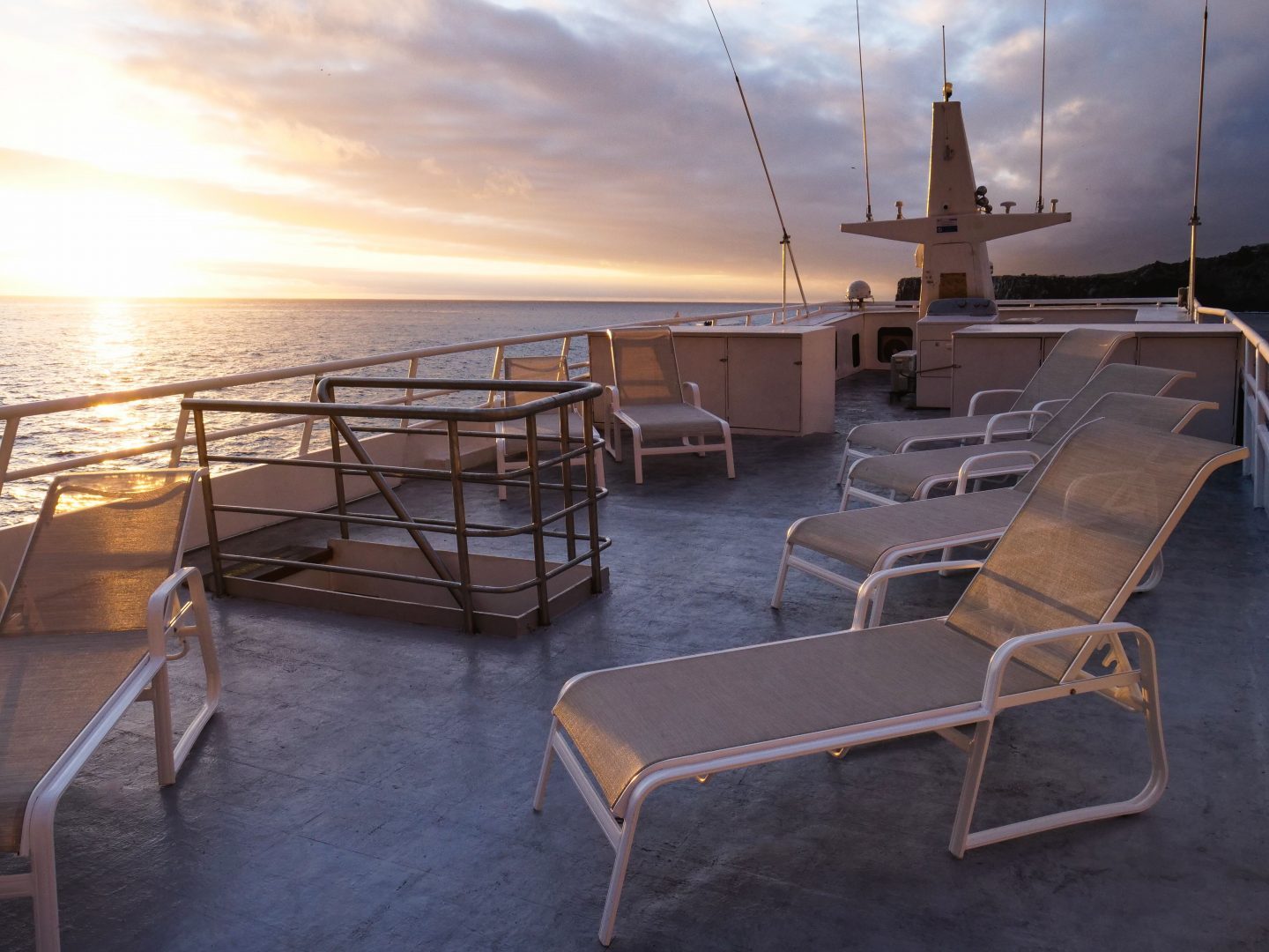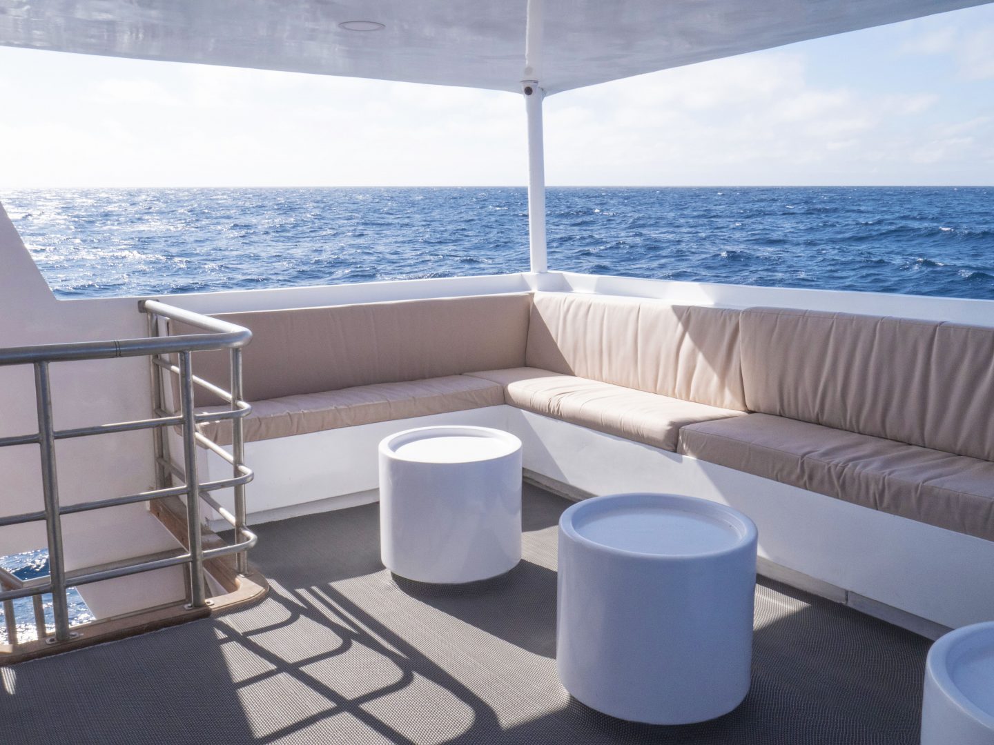 The 16-passenger Aqua is a comfortable and adventurous way to enjoy the Galapagos islands above and below sea level. The boat features a library, a shaded outdoor lounge, a solarium, and dining areas. The Aqua allows you to explore the archipelago with morning dives to view the marine life, and afternoon hiking explorations to discover the varied wildlife on land.