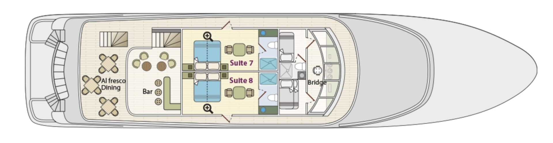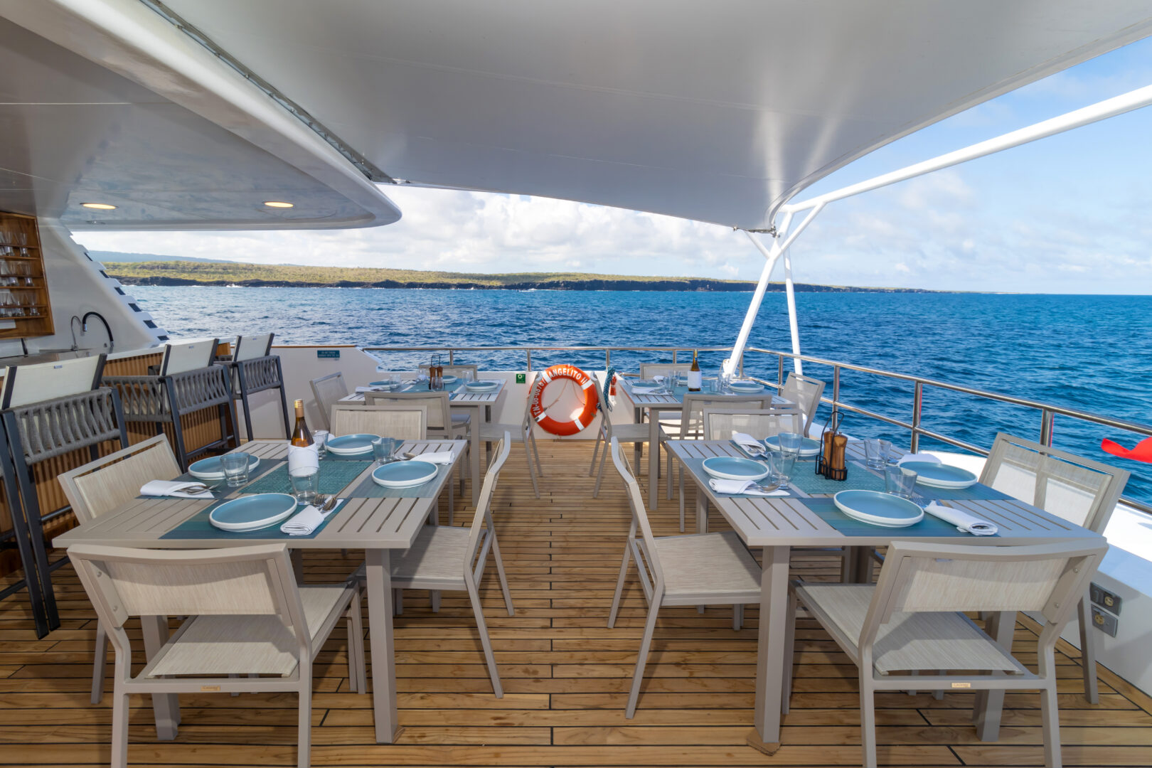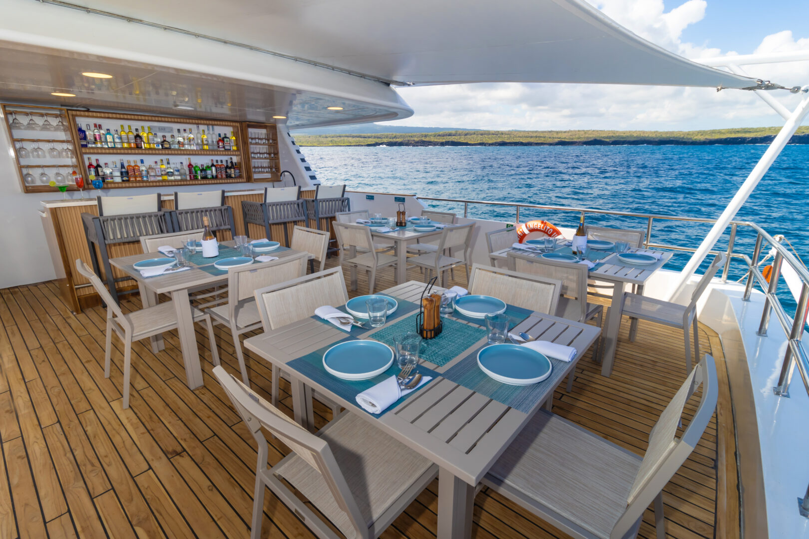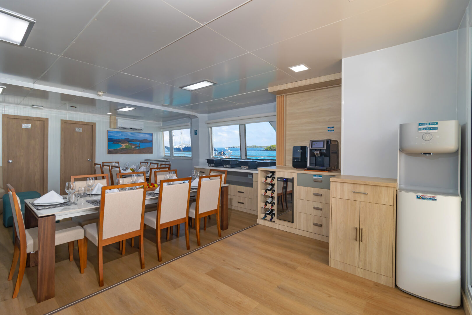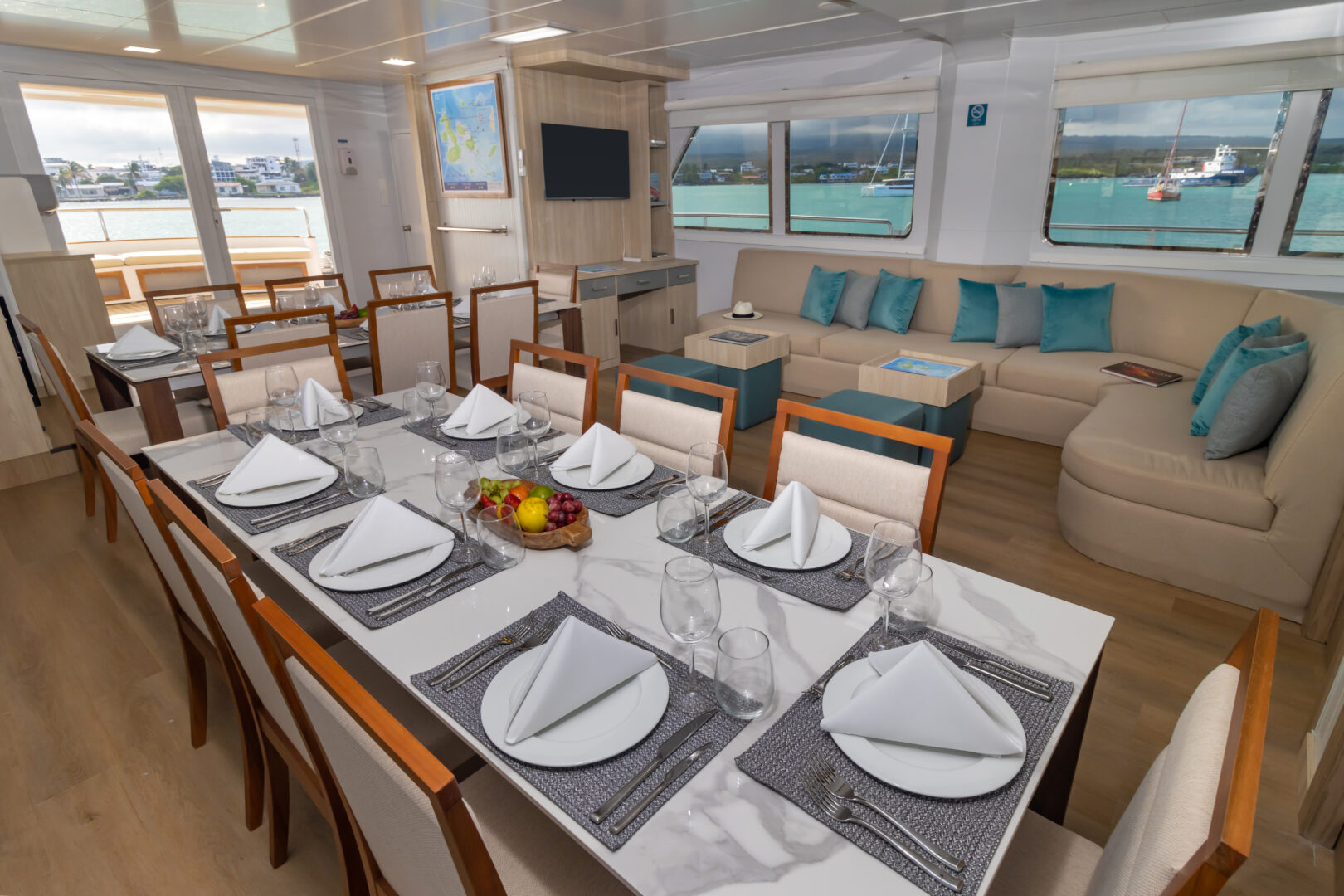 The Galapagos Angel has a passenger capacity of 16 guests, allowing for a feeling of intimacy and exclusive service. There are two spacious suites as well as six convertible ensuite cabins, all featuring panoramic views and air-conditioning.