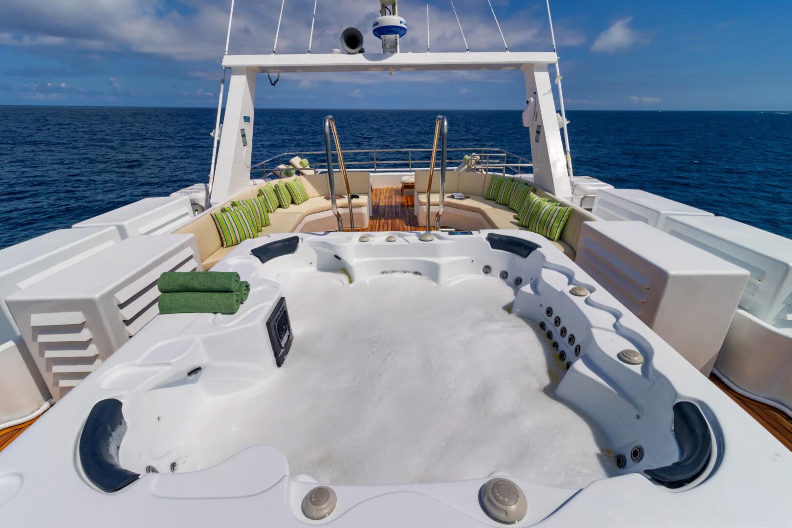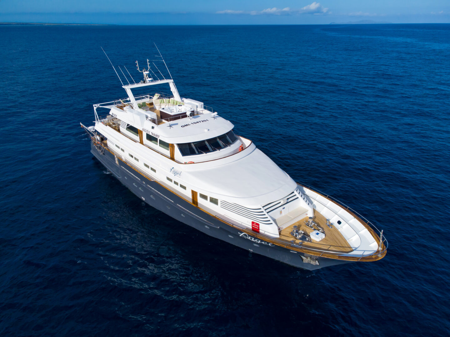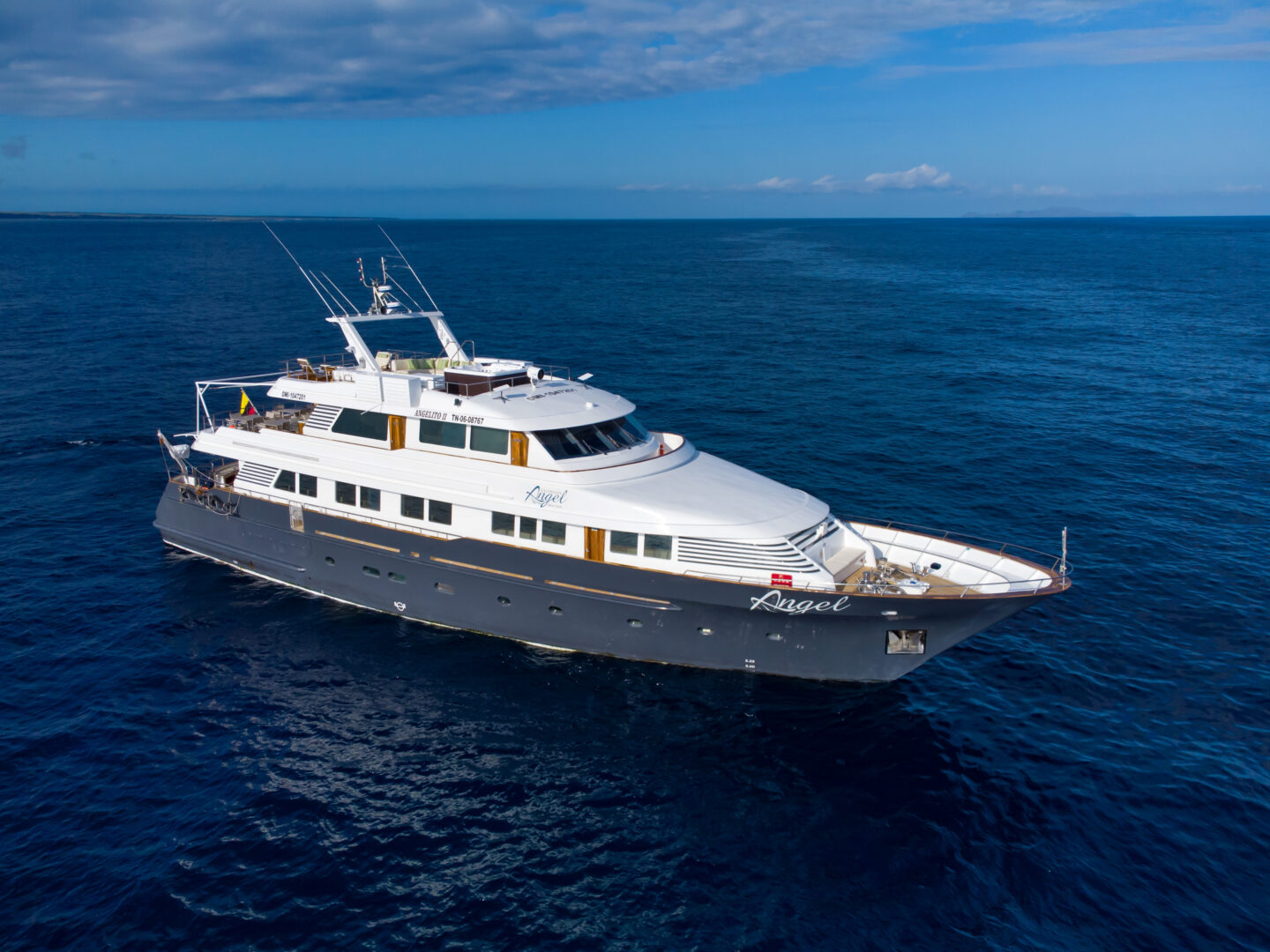 The Galapagos Angel is a 16 passenger first-class yacht, and is the newest member of the Royal Galapagos fleet. This yacht has two large suites and six convertible cabins, each with panoramic views. The yacht also features on-board naturalists, al fresco and upscale dining, a jacuzzi on the sundeck, and a bar.