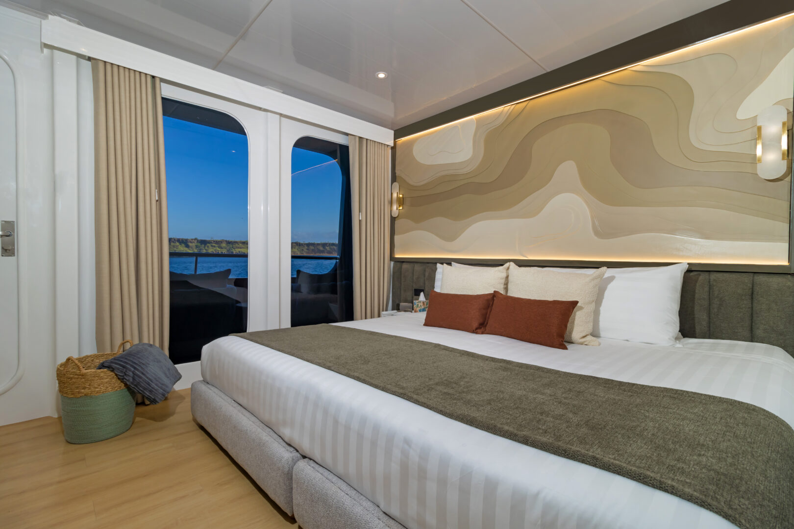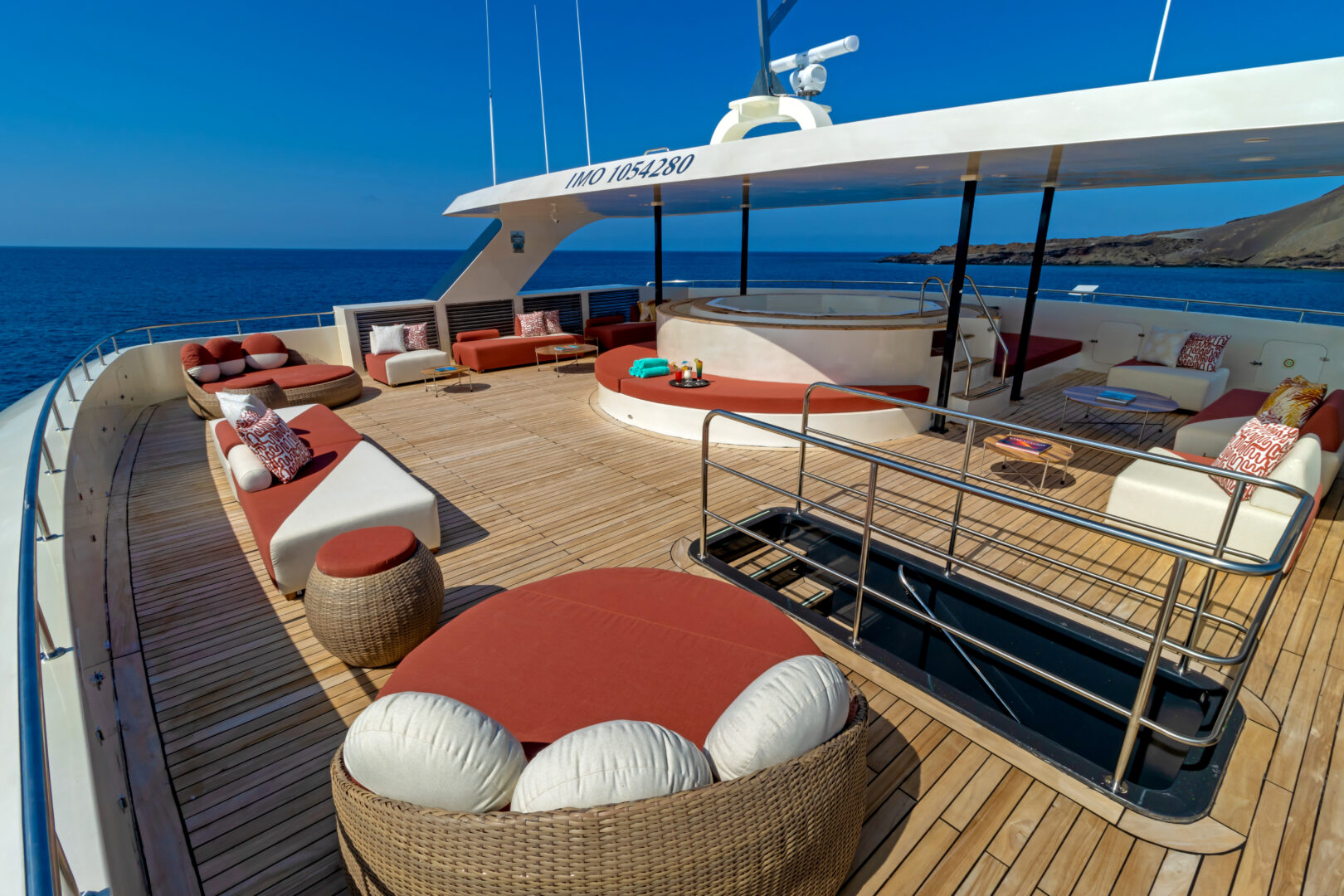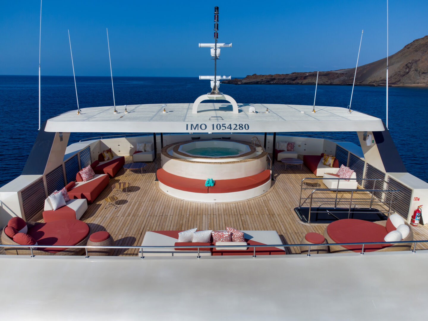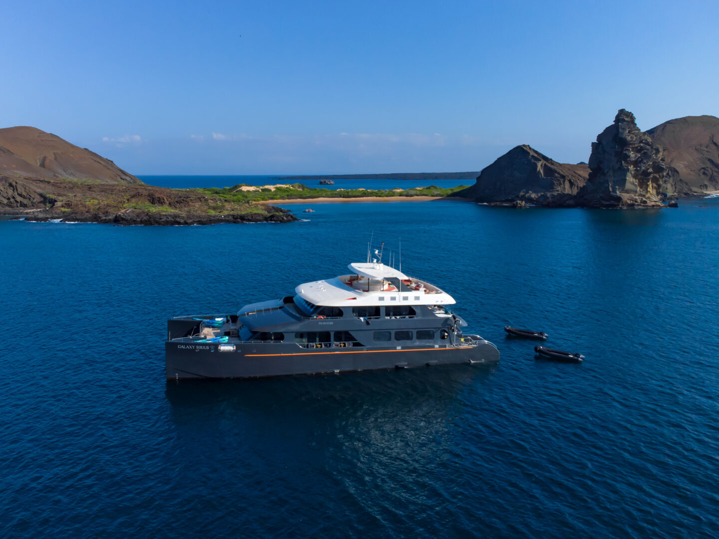 Explore the Galapagos Islands onboard this 16-passenger luxury catamaran, one of the newest in the islands, which features private balconies. The Galaxy Sirius offers a unique guide to passenger ratio of 1:8, one of the best in the Galapagos. Activities available on the Galaxy Sirius include hiking, snorkeling, and kayaking.