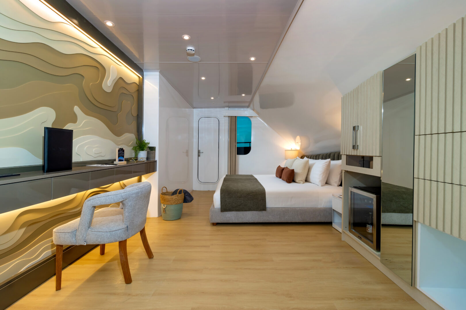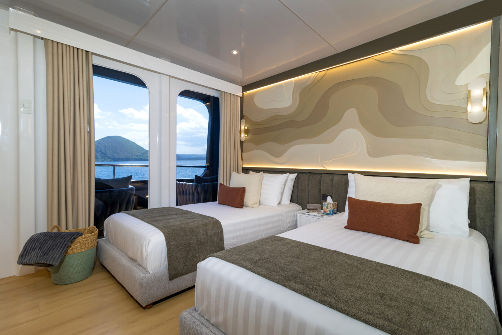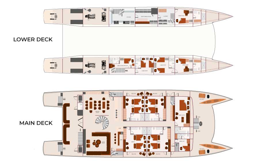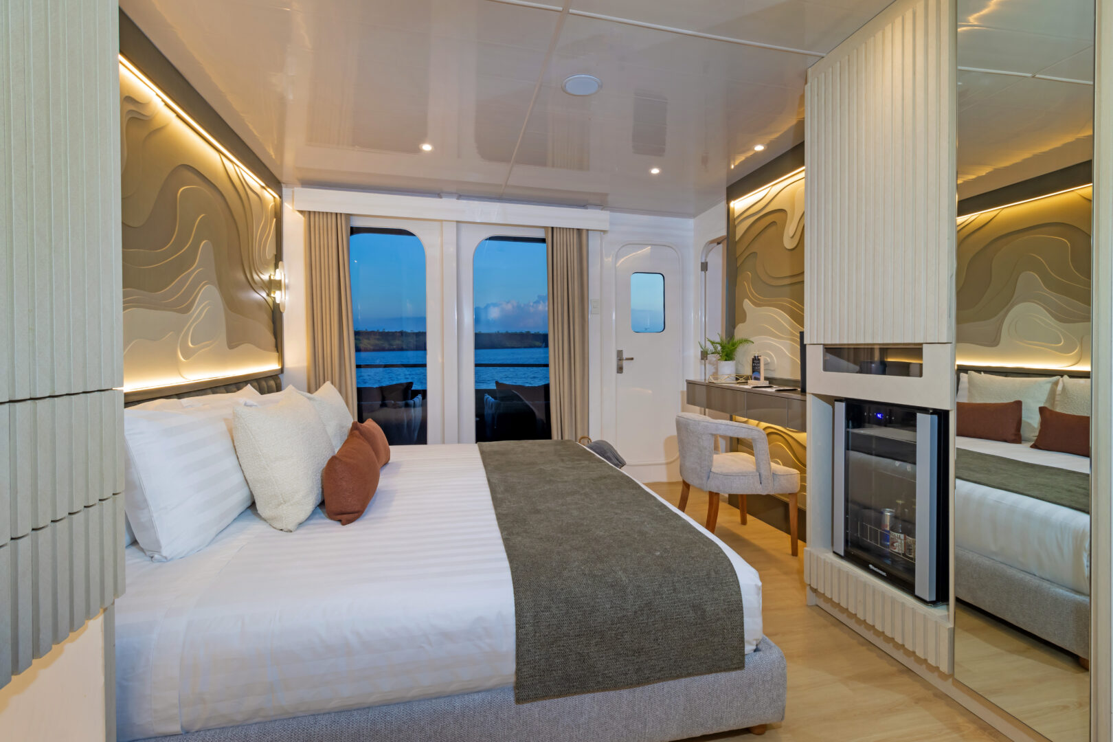 Explore the Galapagos Islands onboard this 16-passenger luxury catamaran, one of the newest in the islands, which features private balconies. The Galaxy Sirius offers a unique guide to passenger ratio of 1:8, one of the best in the Galapagos. Activities available on the Galaxy Sirius include hiking, snorkeling, and kayaking.