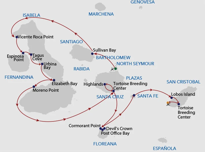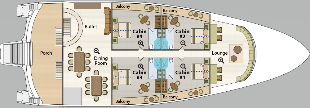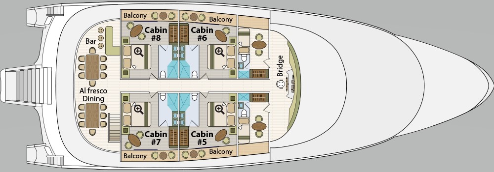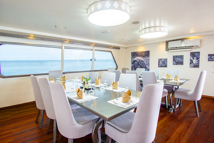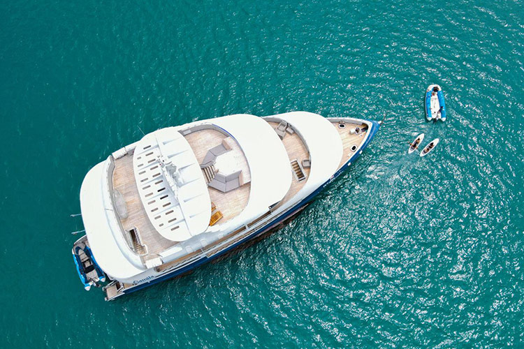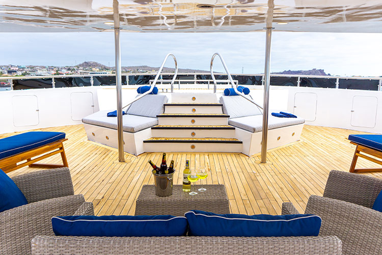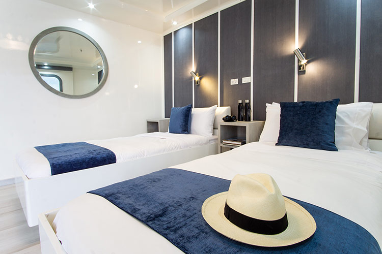 One of the newest offerings in the Galapagos, this trimaran offers greater stability than a double-hull vessel. With private balconies off every spacious cabin, the Horizon provides a high-quality, intimate experience with alfresco dining, an outdoor jacuzzi, and an indoor lounge area. Excursion options include hiking, snorkeling, and kayaking. All excursions are led by a top-quality bilingual naturalist guide.
