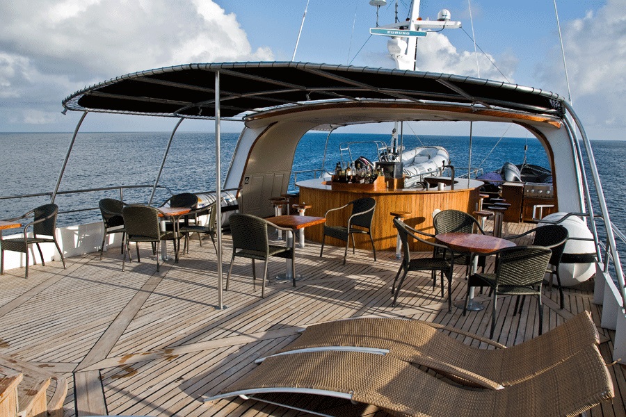 Construction: completed in 2005 Type: Luxury yacht Length: 141 ft. / 43 mts. Beam: 24 ft. / 7.3 mts. Engines: 2 Detroit – MTU Series 60, 4-cycle with Vosper Active Stabilizers Accommodations: 7 double staterooms, 1 single stateroom, and 1 Owner’s suite Crew: Captain, Bilingual Naturalist Guide, plus 9 crew members