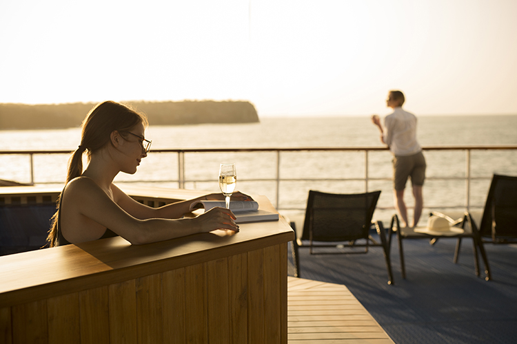 The Isabela II has 1 Owner’s Cabin on the upper deck (180 square feet), 18 Classic Cabins on the cabin deck (138 square feet, twin beds or double bed), and 1 Standard Cabin on the cabin deck (128 square feet, double bed).