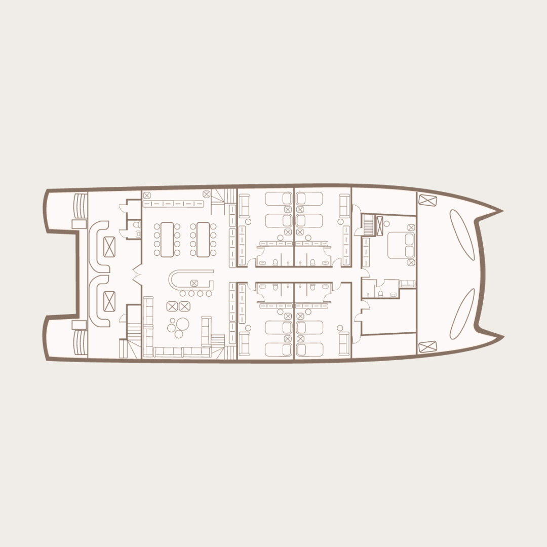 Launching in March 2026, the Monique is a premium catamaran built for up to 16 guests, offering an intimate way to explore the Galápagos. Its sleek twin-hull design and three spacious decks - including a sun deck with lounge areas, whirlpool, bar, and al-fresco dining - provide comfort, stability, and sweeping views. The ship features well-appointed double staterooms with floor-to-ceiling views, premium bedding, air-conditioning, and a private bathroom with upscale amenities. A near 1:1 crew-to-guest ratio ensures attentive, personalized service. Outfitted with solar panels and lithium battery storage, the Monique minimizes its environmental impact. Onboard spaces are designed to keep guests connected to nature, while daily guided excursions bring them face-to-face with the archipelago’s remarkable wildlife.