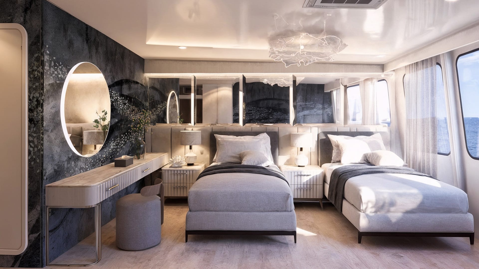 Construction (year): 2026 Type of vessel: Catamaran Length: 33.96 mt / 111.42 ft Beam: 12.9 mt / 42.32 ft Engine: TBC Speed: 12 knots Passenger capacity: 16 pax Crew: 12