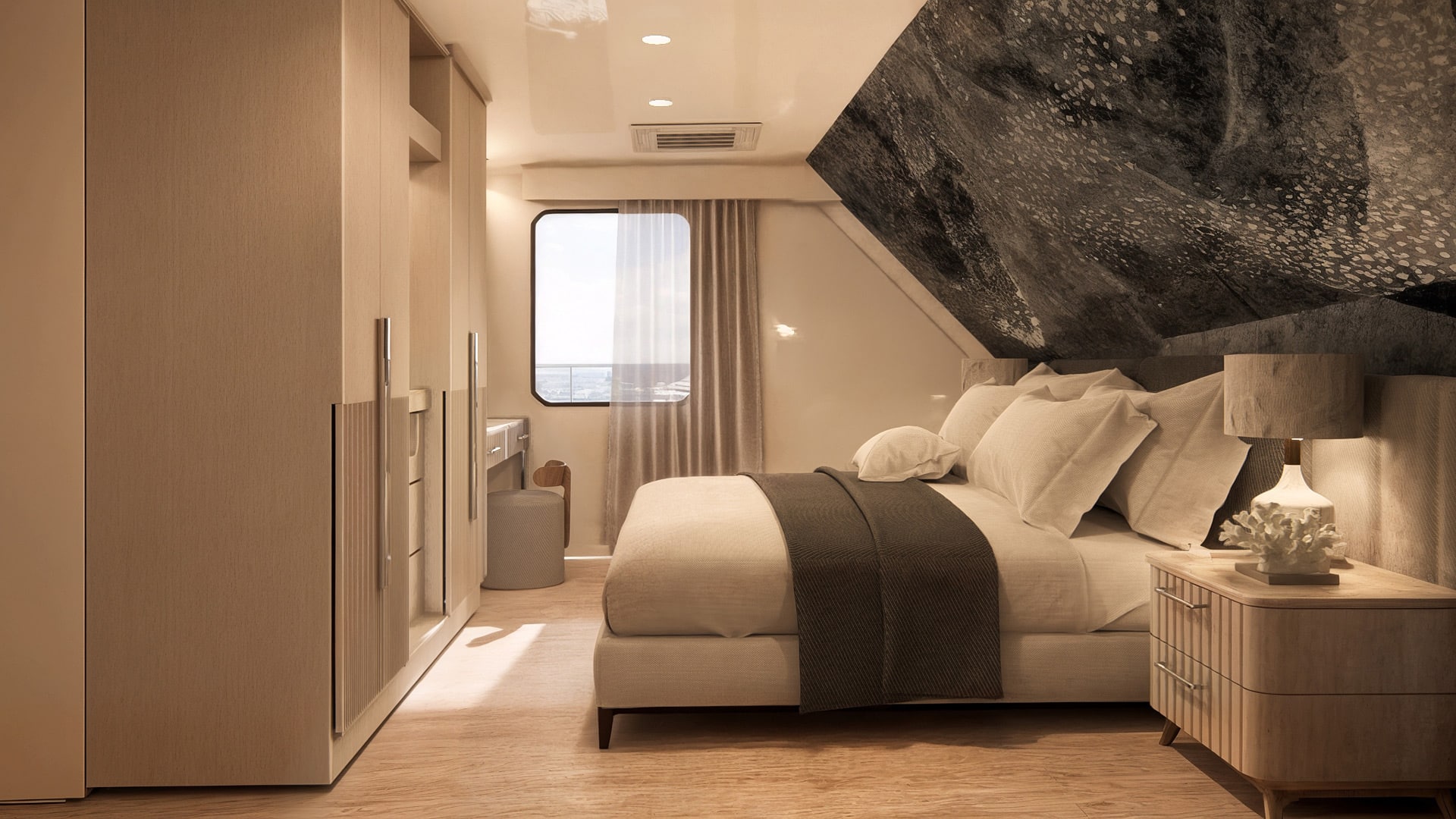 Single Stateroom – 1 cabin – Upper Deck – 225 sq. ft. – double bed. Please note the single stateroom typically accommodates additional travelers who are part of an odd-numbered group.