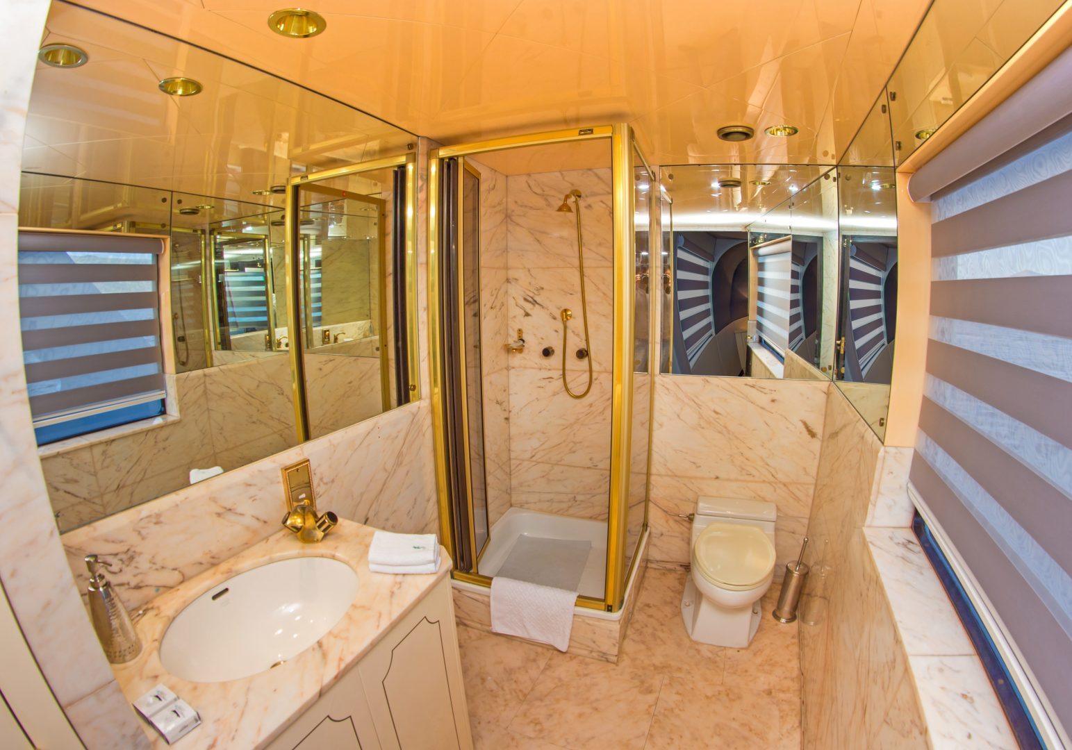 All cabins have private bathroom, individual climate controls, and ample storage space for clothing and luggage.