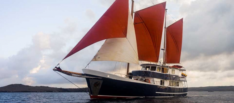 The Samba is a classic Dutch sailing vessel with teak decks. Built in 1966 as a luxury private yacht, the Samba now specializes in Galapagos Islands exploration. The ship accommodates 14 passengers in seven cabins, and features an ample dining room and salon, outdoor dining area, and a bar. The Samba is a graceful, top-quality craft, locally owned and with a great local crew. All excursions are led by a bilingual naturalist guide; excursion options include hiking, snorkeling, and kayaking.