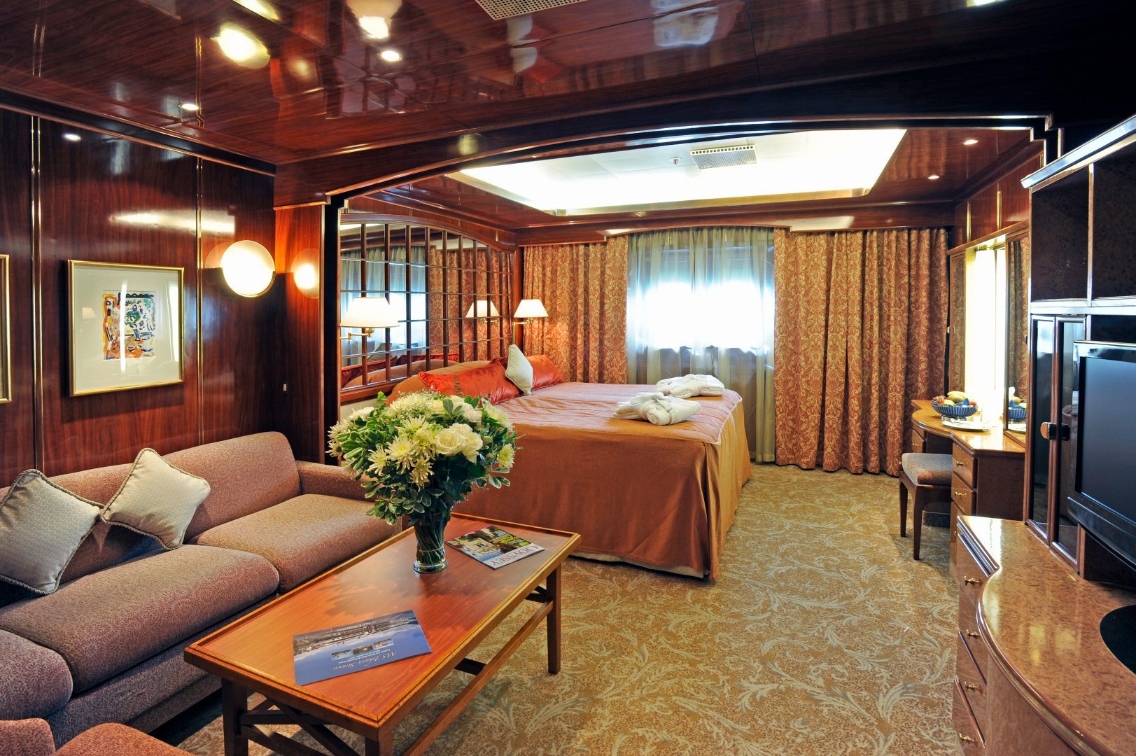 Owner’s Suite: Two room suite with sitting room and bedroom. 385 sq. ft. (34 m²) including a 110 sq. ft. (10.2 m²) balcony.