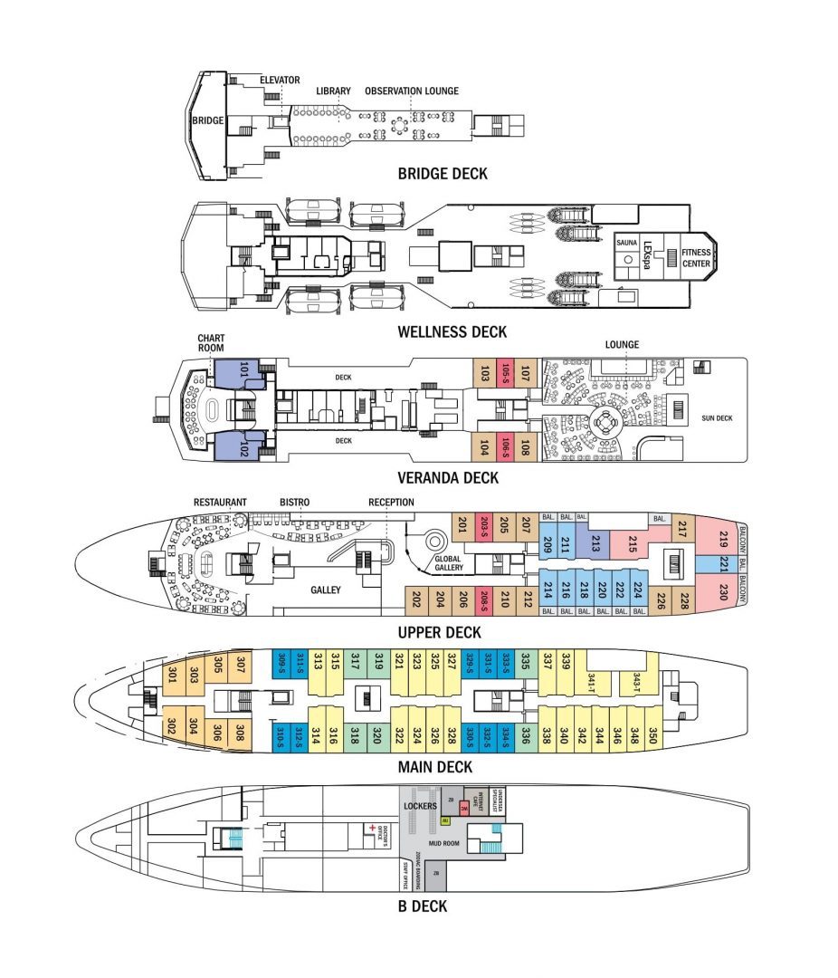 • Category 4 (Upper and Veranda Decks with window, #103 – 104, 107-108, 201-202, 204-207,210, 212, 217, 226, 228)