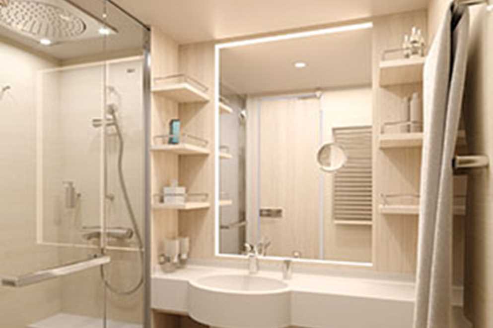 • Category 1 (Fore Deck—Standard cabin with two large windows, Alcove seating, Relax chair, 183 square ft. #406, 408, 411, 413, 415)