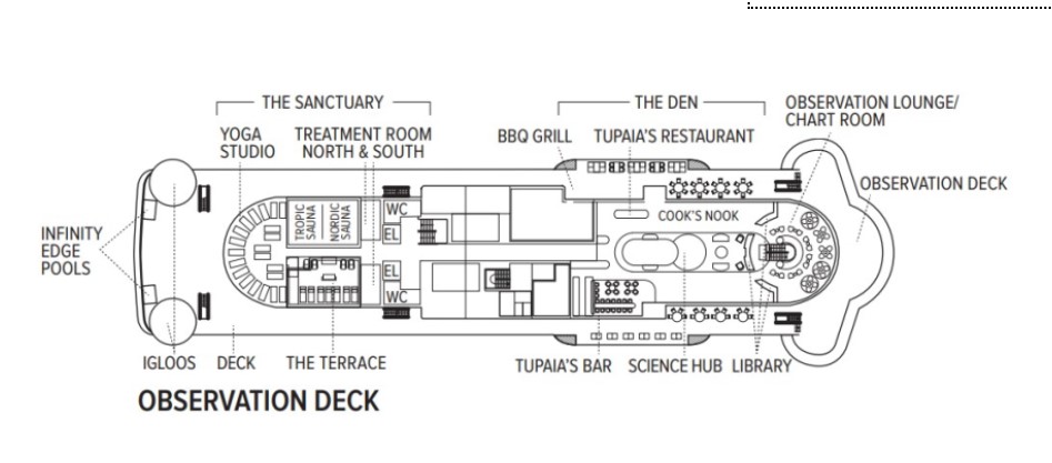 Guests: 148 Length: 407 feet (124 meters) Width: 69 feet (21 meters) Year built: 2021 Gross Tonnage: 12786 Average speed: 17 knots Registered: Bahamas