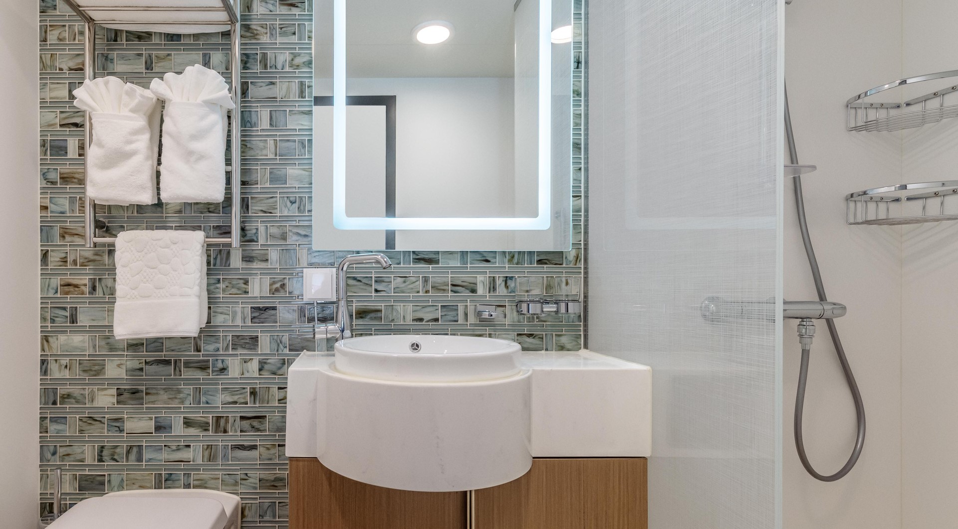 Aurora Stateroom Twin Share – There are three Aurora Stateroom Twin cabins featuring portholes, all with private ensuite bathrooms. Located on Deck 3, they’re close to the mudroom and loading platforms, perfect for adventurers who are looking for a comfortable base that’s close to the action.