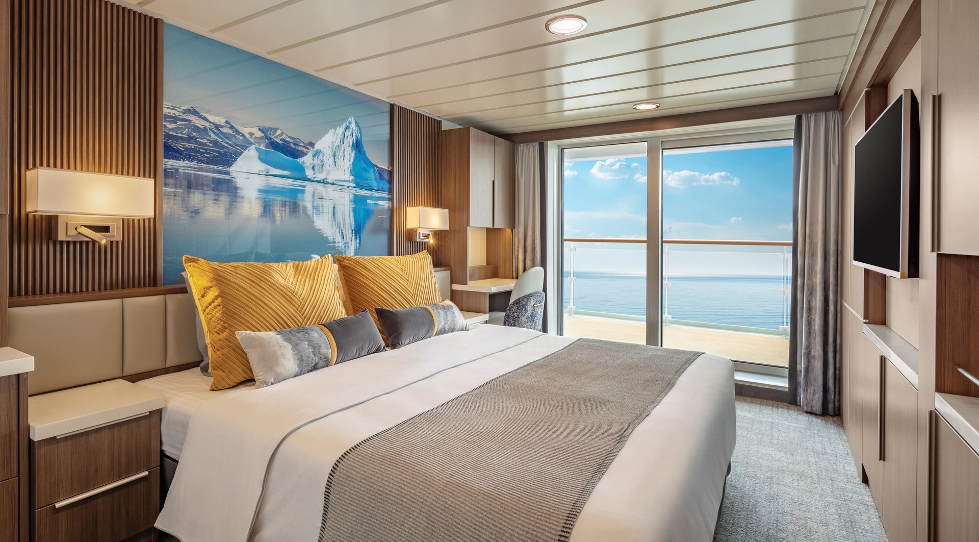 Balcony Stateroom Superior – With a bit more room to stretch the legs, the Balcony Stateroom Superior cabins are perfect for polar adventurers who travel with plenty of gear. Located on Deck 4 and 6, the Staterooms feature floor-to-ceiling windows, ensuite bathrooms, and a comfortable desk area.
