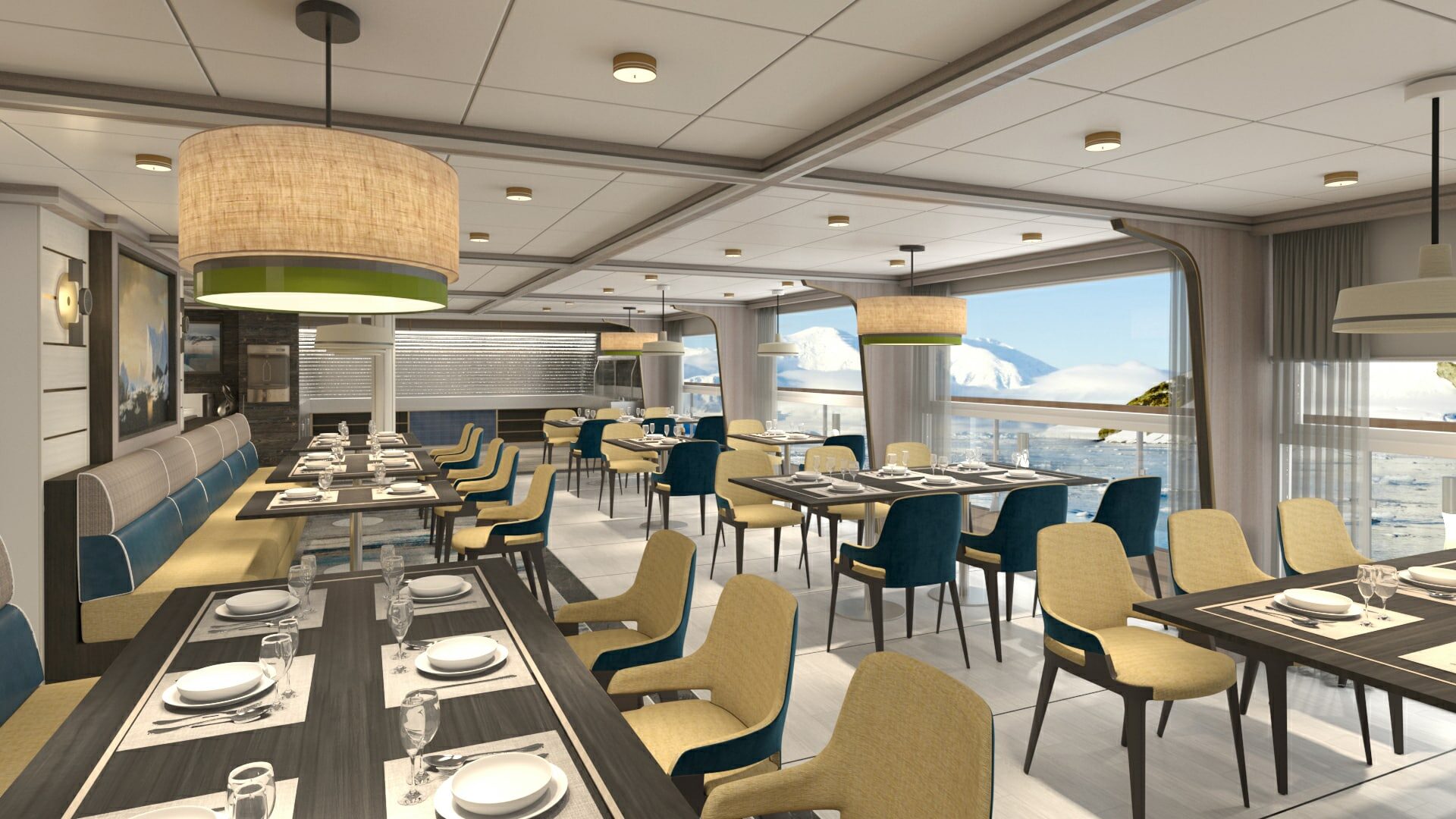 Sylvia Earle is a comfortable basecamp for your next polar adventure, whether you are heading north to summer in the High Arctic or traveling south to explore the waters of Antarctica. This premium expedition ship is built to world-class polar standards and is ready to contend with the possibility of adverse weather and sea conditions while also ensuring full comfort and confidence out on the open ocean. Averaging 132 passengers per voyage, the Sylvia Earle is designed to facilitate easy access to each destination for every guest. The expedition cruise is set up to accommodate up to 100 passengers on all land excursions while also launching groups of kayakers and divers for active explorations along each route. Guests traveling on board the Sylvia Earle will enjoy multiple landings, flexible itineraries, and a family atmosphere as well as a heated saltwater swimming pool, gym, sauna, a glass atrium lounge offering spectacular views, a library, and state-of-the-art lecture facilities.