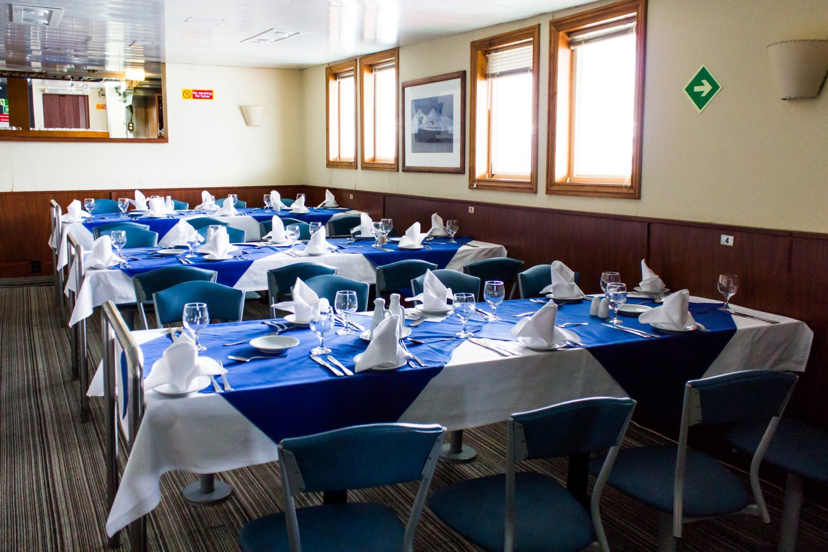 Length: 278 ft (84.7 m) Breadth: 51 ft (15.4 m) Draught: 18 ft (5.5m) Gross Tonnage: 2,923 tonnes Max Speed: 14 knots Cruise Speed: 12 knots Passengers: 90 Crew & Staff: 40 Zodiacs & RIBs: 7 Constructed: 1970 Ice Classification: INSB Ice class C Engine: 2 ALCO 1600 HP each