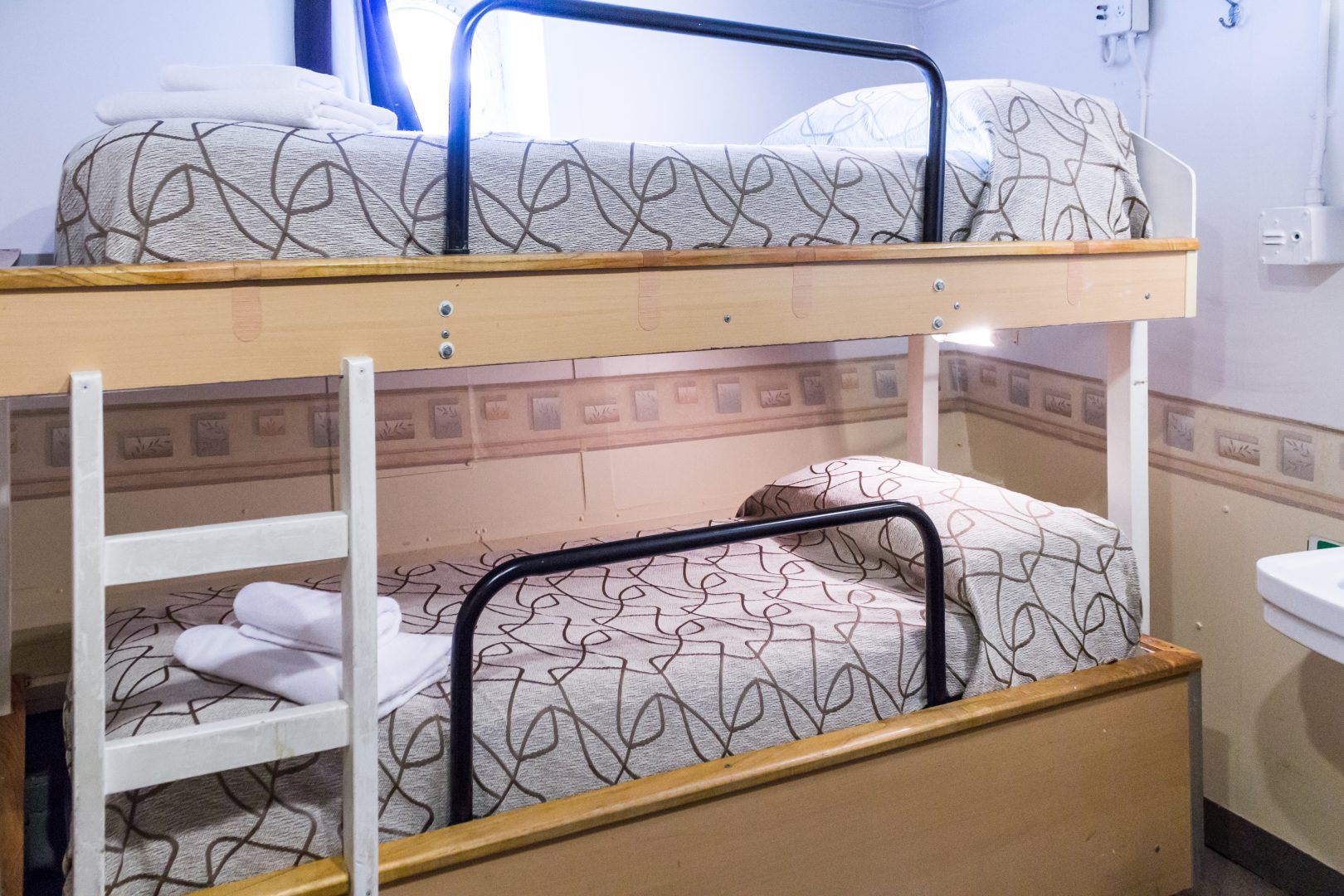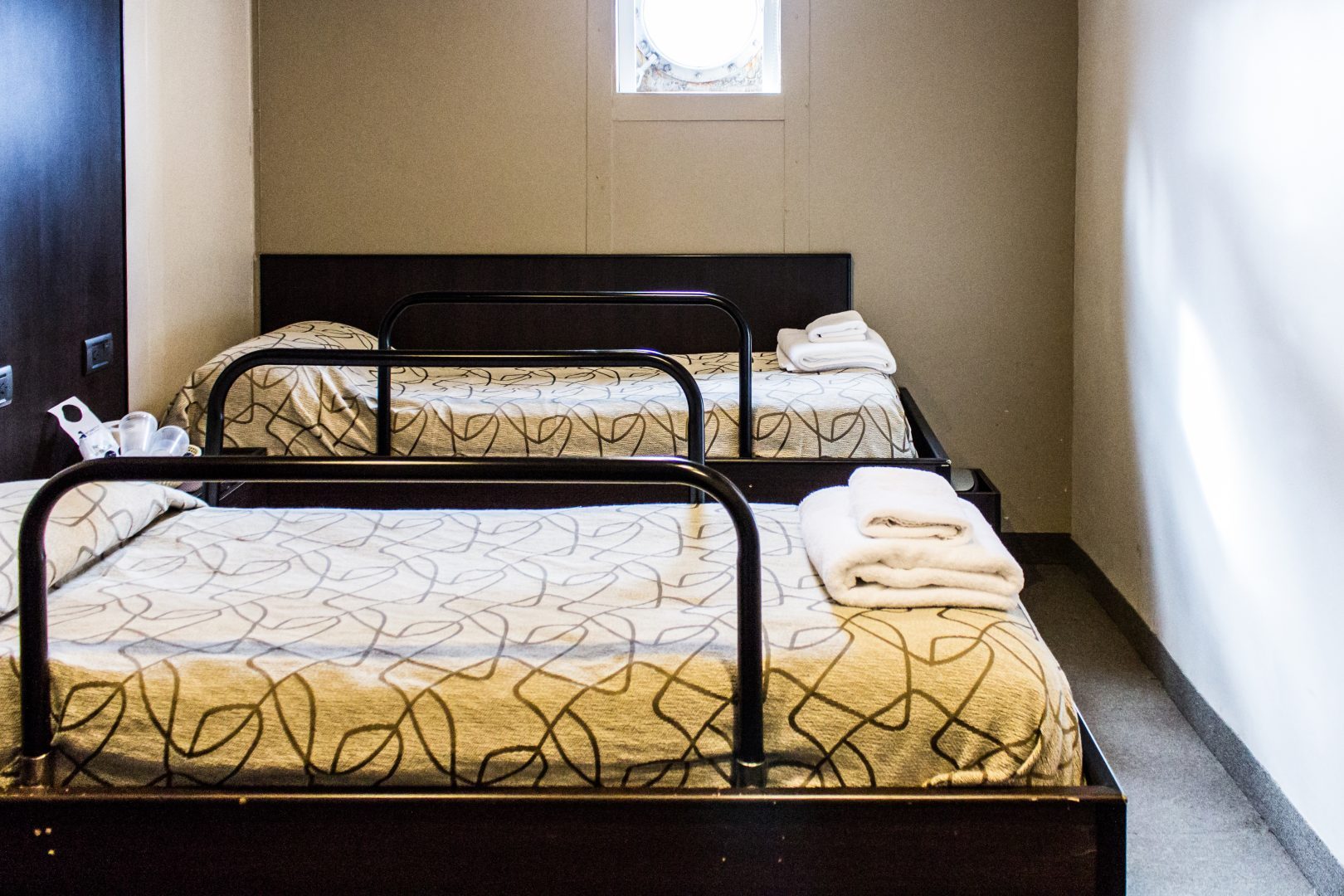 Standard: 12 Twin outside cabins with portholes on deck E, semi-private facilities, two berths (upper/lower).