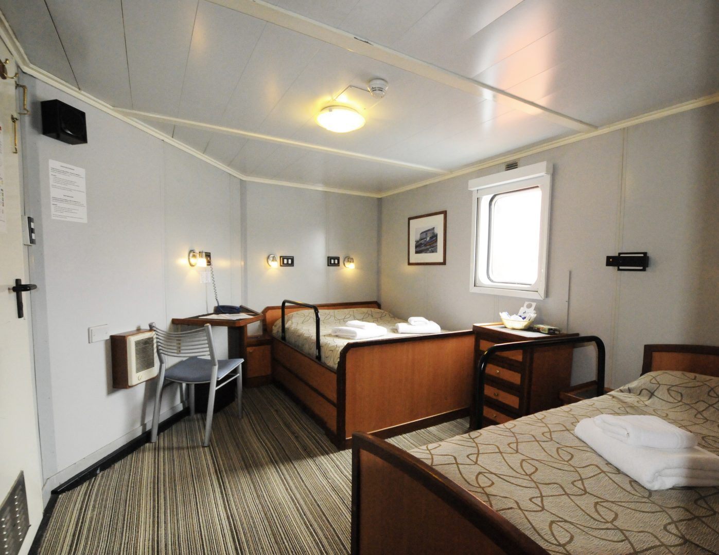 Standard Plus: 11 Twin outside cabins with portholes or windows on deck E, private facilities, two lower berths. Cabin 640 has one double bed. 2 Triple outside cabins with windows on deck E, private facilities, three lower berths.