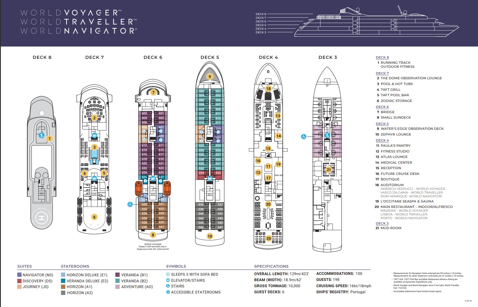 Built in: 2021 Flag: Portugal Class: Ice-Strengthened Expedition Ship Speed: 16kn/30km/18mph Length: 126m/413 ft Beam: 19m/62ft Gross Tonnage: 9934 Passengers: 196 Crew: 117 Cabins: 98 Operator: Atlas Ocean Voyages