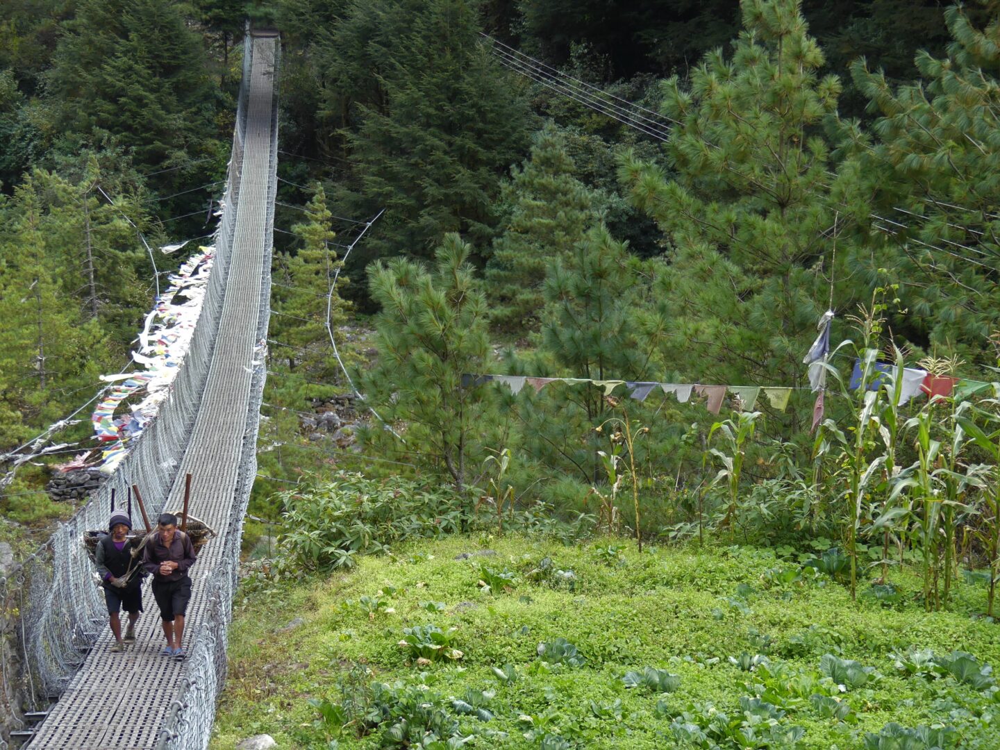 Fly to Lukla. Upon arrival, meet your porters and head out on the trail! The trek begins with a leisurely and scenic three-hour hike down to the riverside village of Phakding. Cross roaring rivers via sturdy suspension bridges adorned with prayer flags and pass by colorful mani stones. Lunch is at a lodge in Phakding. After lunch, hit the trail again to reach your lodge at Monjo.