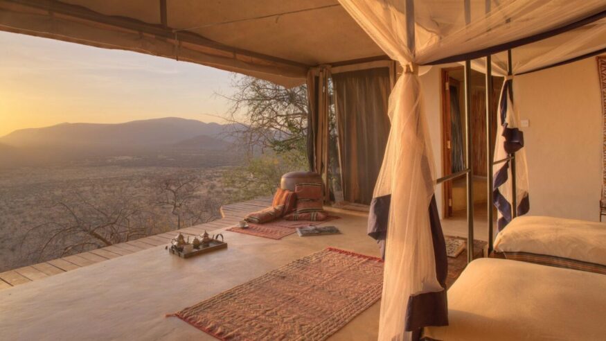 Fly to Kenya’s spectacular northern rangelands, heading for Samburu. Overlooking the vast Kalama Conservancy, your lodge here allows you exclusive access to 200,000 acres of pristine private wilderness. This area is home to huge herds of elephant following ancient migration routes, leopards on rocky outcrops, and rare wild dogs. It is also one of the only places on earth to spot the rare endemic wildlife that only lives north of the equator, like Grevy’s zebra, the reticulated giraffe, Beisa oryx, Somali ostrich, and the long necked genenuk.