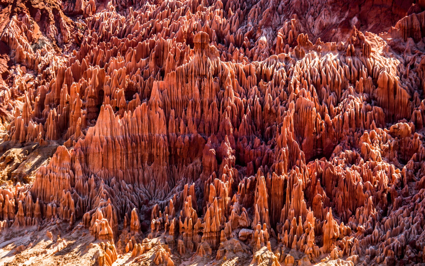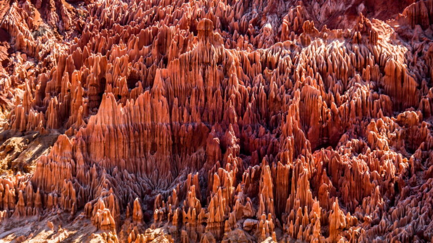 Set out for the Tsingy with your private guide. Encounter the endless variety of native plants and wildlife as you hike in closer to the rock forest. Make your way through the Cave of Chameleon, with its colorful stalagmites and stalactites and resident bats, to a series of magnificent lookouts atop the Tsingy. On a clear day, you can see all the way to the archipelago of Mitsio.