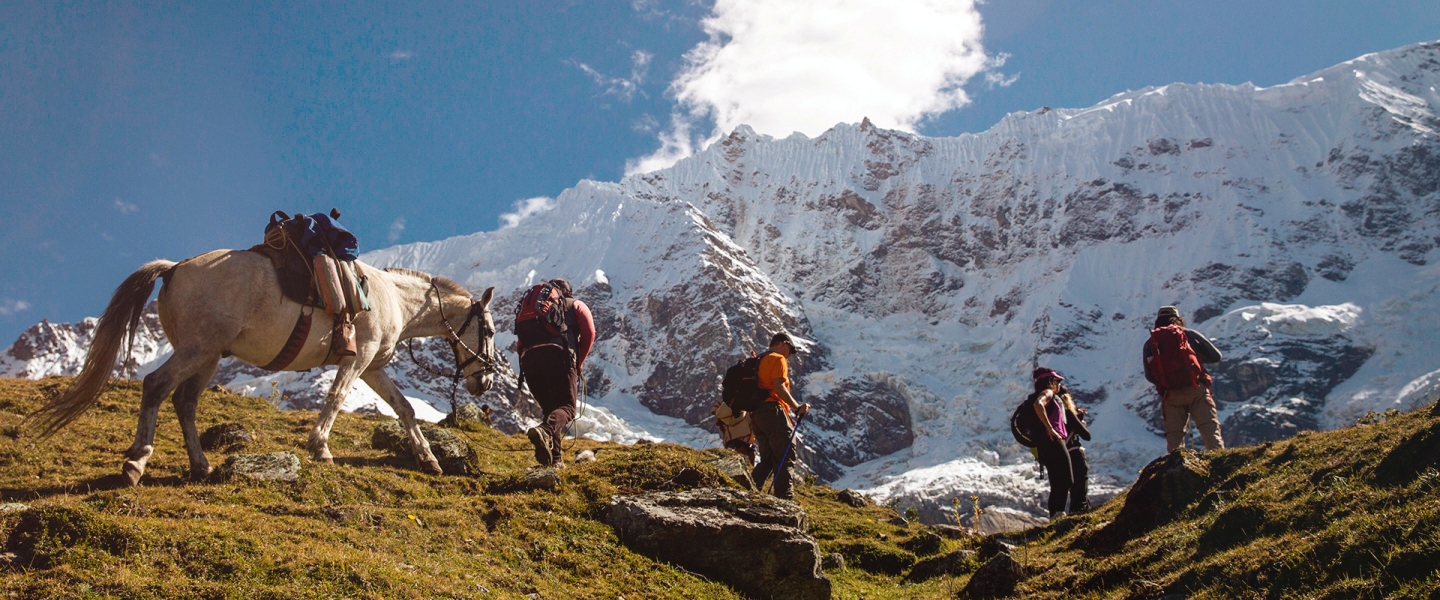 Hike up the Rio Blanco Valley toward Mount Salkantay. After a few hours the trail starts up a series of switchbacks offering great views down the valley to the lodge you left behind. You will soon find yourself passing the highest point of the trek, just over 15,000 feet, with the south face of Salkantay towering over you. Start down to your second lodge, Wayra, passing by an ancient Inca road and rural settlements.