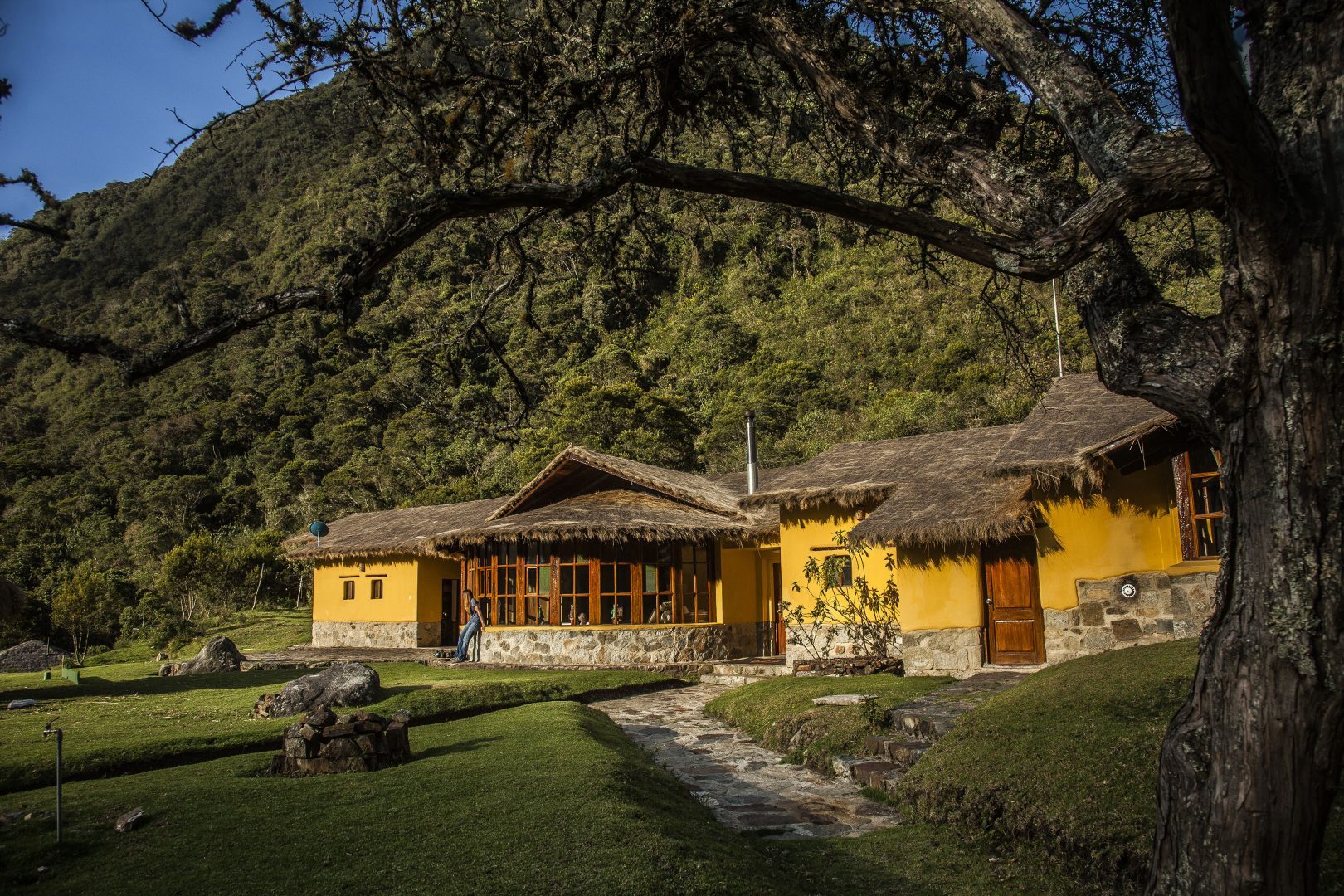 Perched on a 1,000 foot bluff above the river, the Colpa Lodge is surrounded by forest and overlooks the Colpampa Valley. The 6-room lodge has an outdoor hot tub, reading room, and fireplace. A cozy stop on the Salkantay Trail.