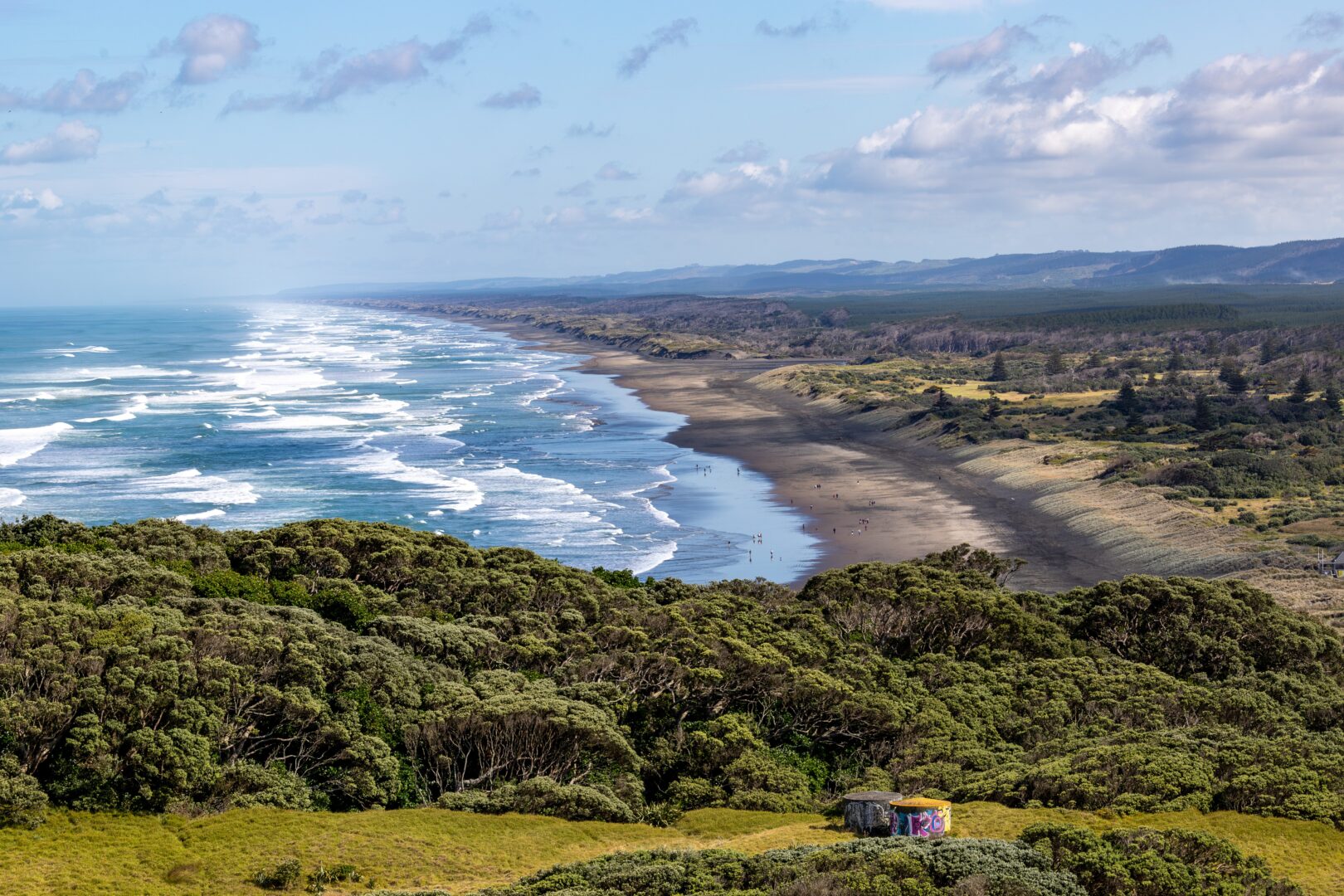 Explore the dramatic contrasts of Auckland’s east and west coasts on a full day private coastal tour. Begin with a visit to the rugged black sands of Muriwai Beach, home to a striking gannet colony and sweeping cliff-top views. Take time to walk along the shoreline, observe the seabirds nesting nearby, and soak in the wild coastal beauty.