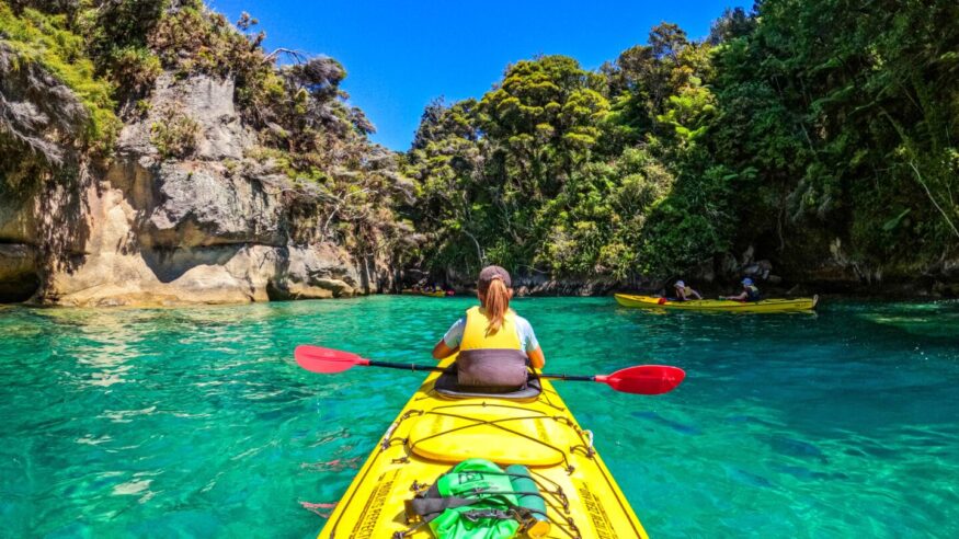 Today you’ll explore the incredible azure bays and indigenous forests of Abel Tasman National Park on a full-day kayak and hiking tour. After a safety briefing and paddling instruction, set off by sea kayak to explore sheltered coves, golden beaches, and tidal estuaries. Weather and tides will guide the day’s route, ensuring the best possible experience. After time on the water, continue your exploration on foot along one of the park’s forested coastal trails, taking in panoramic views and the pristine natural environment.