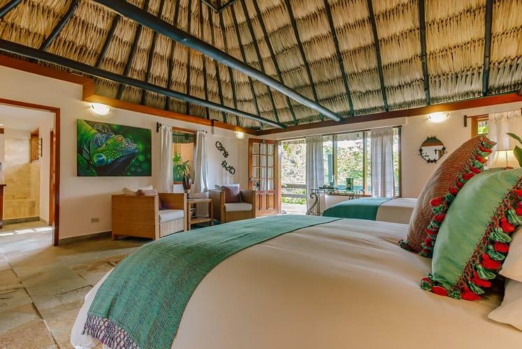 Chaa Creek is composed of 23 palm-thatched cottages and offers a unique, luxurious base for adventures in the rainforests of Belize. This private, 365-acre nature reserve sits along the banks of the Macal River in the foothills of the Maya Mountains. Explore the nature trails that wind around the property, and get to know the local wildlife: a diversity of exotic jungle dwellers make their home in the area, including peccaries, jaguars, monkeys, and over 300 species of tropical and migratory birds. The lodge offers a restaurant, spa, infinity swimming pool, butterfly exhibit, organic farm, and horse stables.
