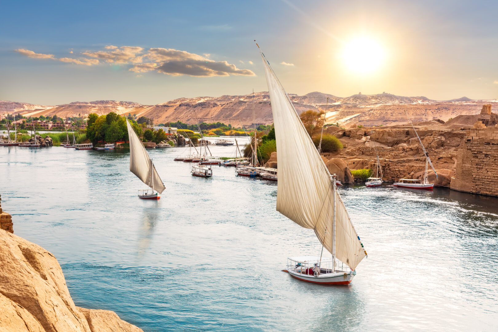 Cruise the Nile River in style on a luxury vessel that suits your individual taste. Select from our carefully curated portfolio of vessels, from traditional Dahabiya sailing boats to larger cruise ships, each with their own style and flair guaranteed to make your Nile Cruise a highlight of your trip to Egypt. Iconic sightseeing with your private guide is followed by afternoons lounging on the sundeck, fine dining, a range of wellness activities, and plenty of relaxation in your sumptuous cabin or suite. Talk to one of our Africa Specialists about our range of luxury Nile cruises.